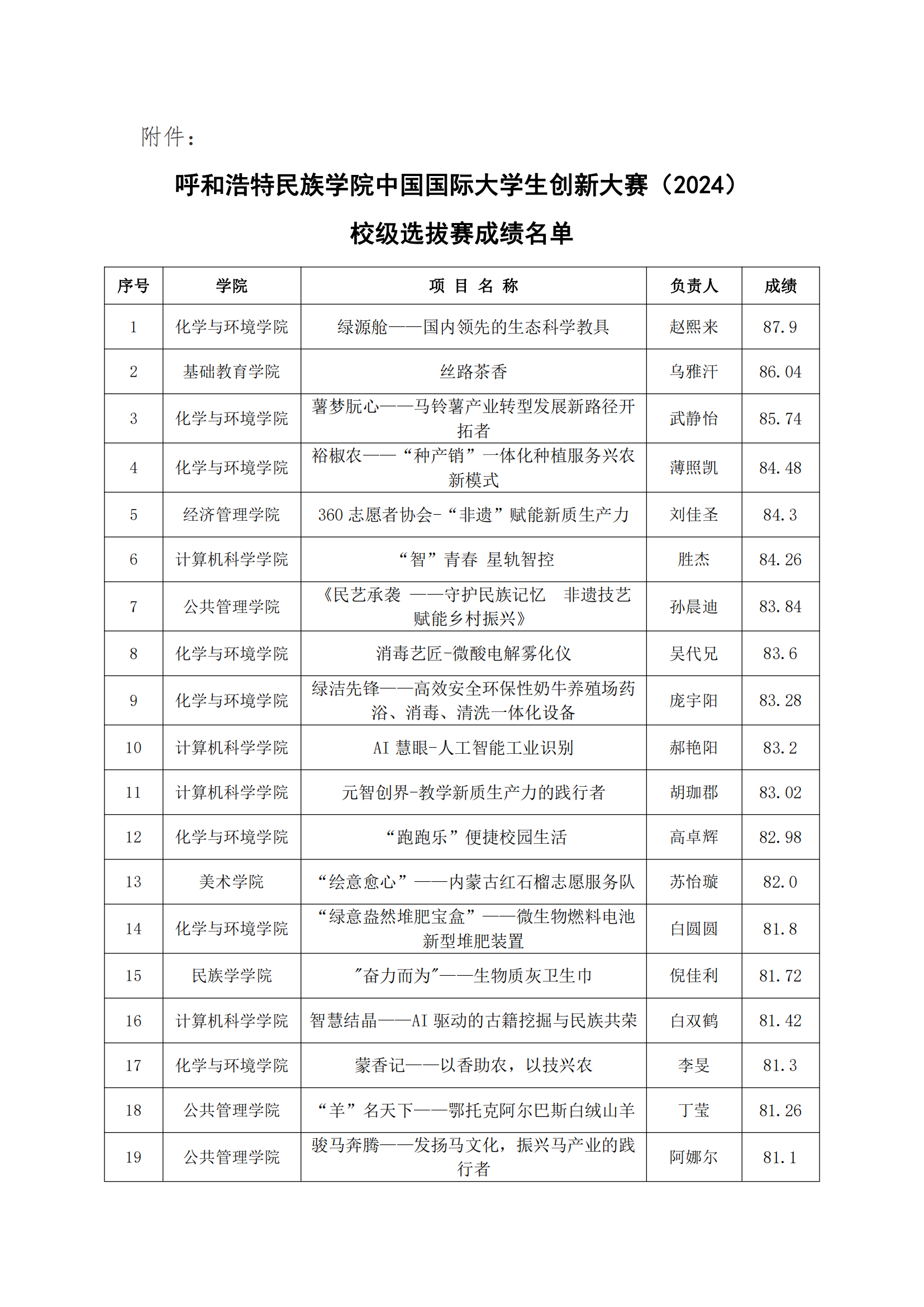 关于Beat365唯一官方网站中国国际大学生创新大赛(2024)校级选拔赛成绩的公示