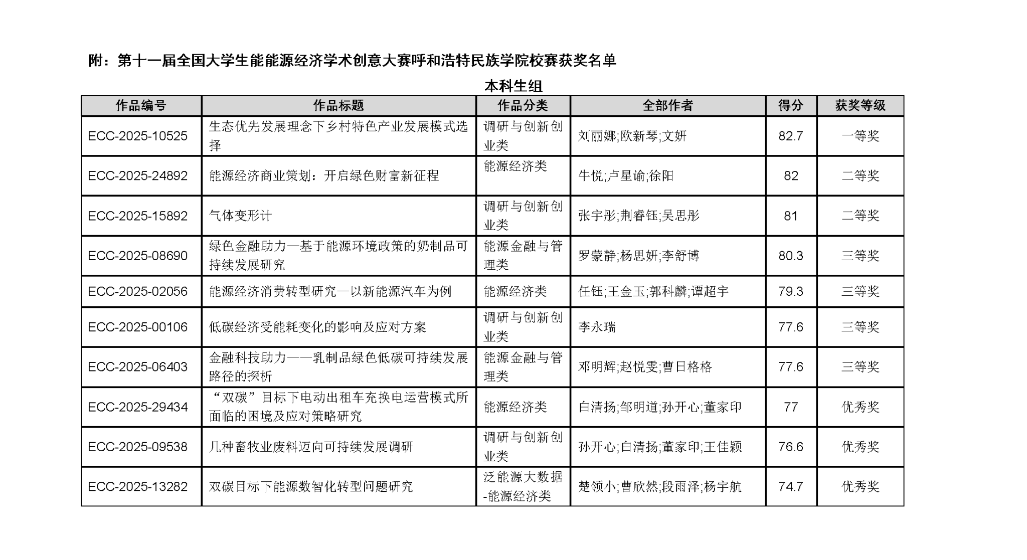 第十一届全国大学生能源经济学术创意大赛Beat365唯一官方网站校赛获奖名单公示