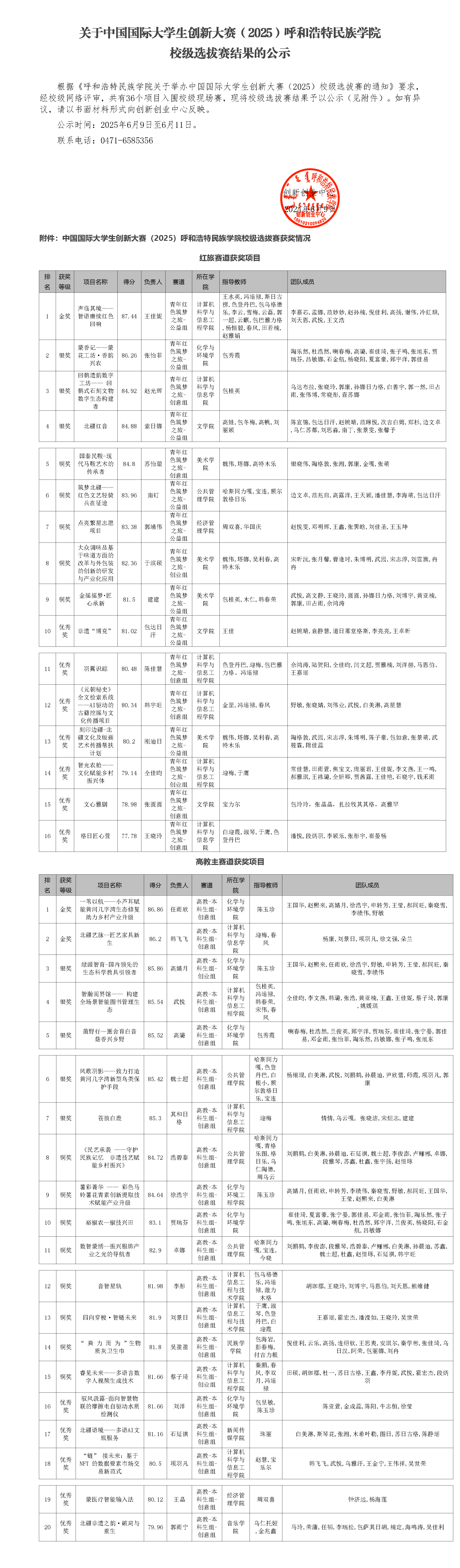 关于中国国际大学生创新大赛(2025)Beat365唯一官方网站校级选拔赛结果的公示
