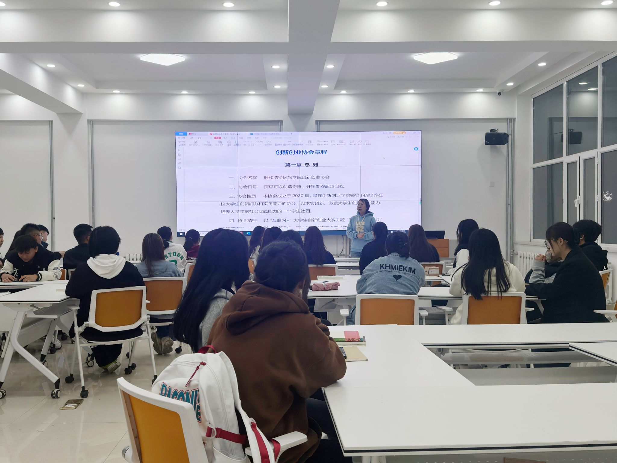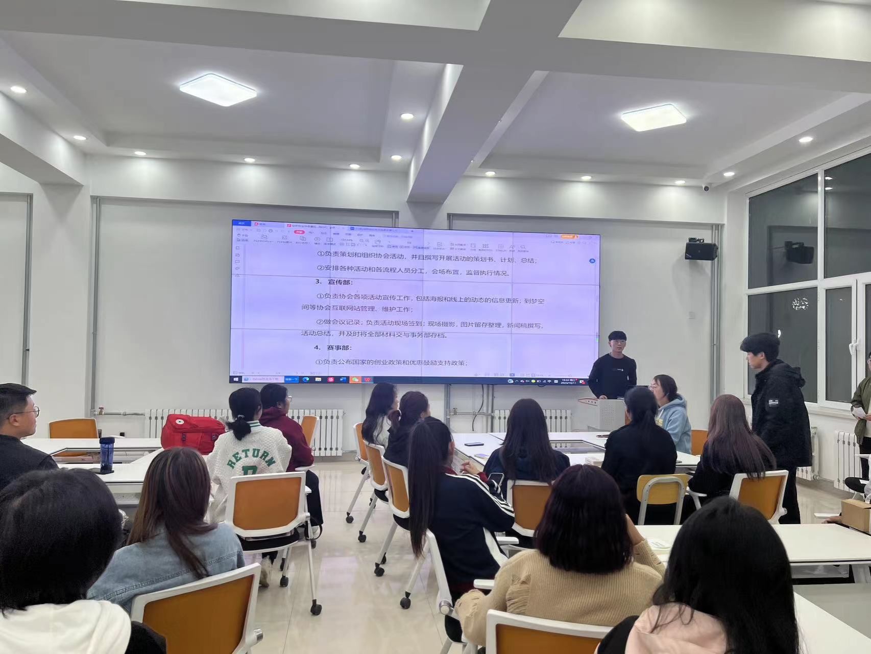 2023年10月12日下午,Beat365大学生创新创业协会在创业楼101举办了纳新换届全体大会。本次大会有创新创业学院实训部主任多荣娜老师、协会会长、各部门部长和协会全体成员共40余人参加。