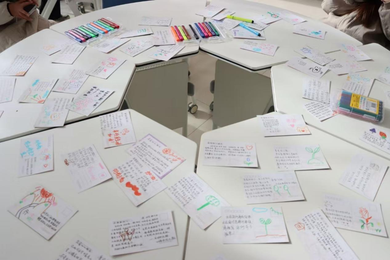此外,本次活动还组织了校园关爱行动。志愿者们分组前往学校的各个角落,与同学们为留守儿童亲手制作慰问卡片和小礼品,希望他们未来更加美好。不少同学在“kt板”上签名,表达自己对本次活动的支持。