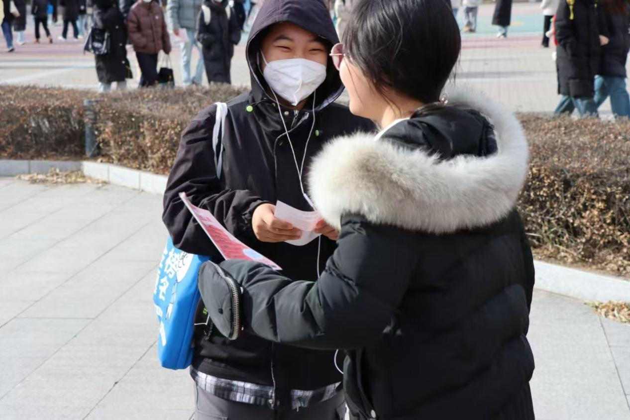 同时,校园的另一角还开展了爱心宣传活动。志愿者们通过发放爱心宣传单、讲解活动内容等形式,向同学们普及留守儿童以及乡村振兴知识,倡导大家关注留守儿童,鼓励大家以实际行动参与关爱留守儿童的活动中,为乡村振兴贡献自己的一份力量。