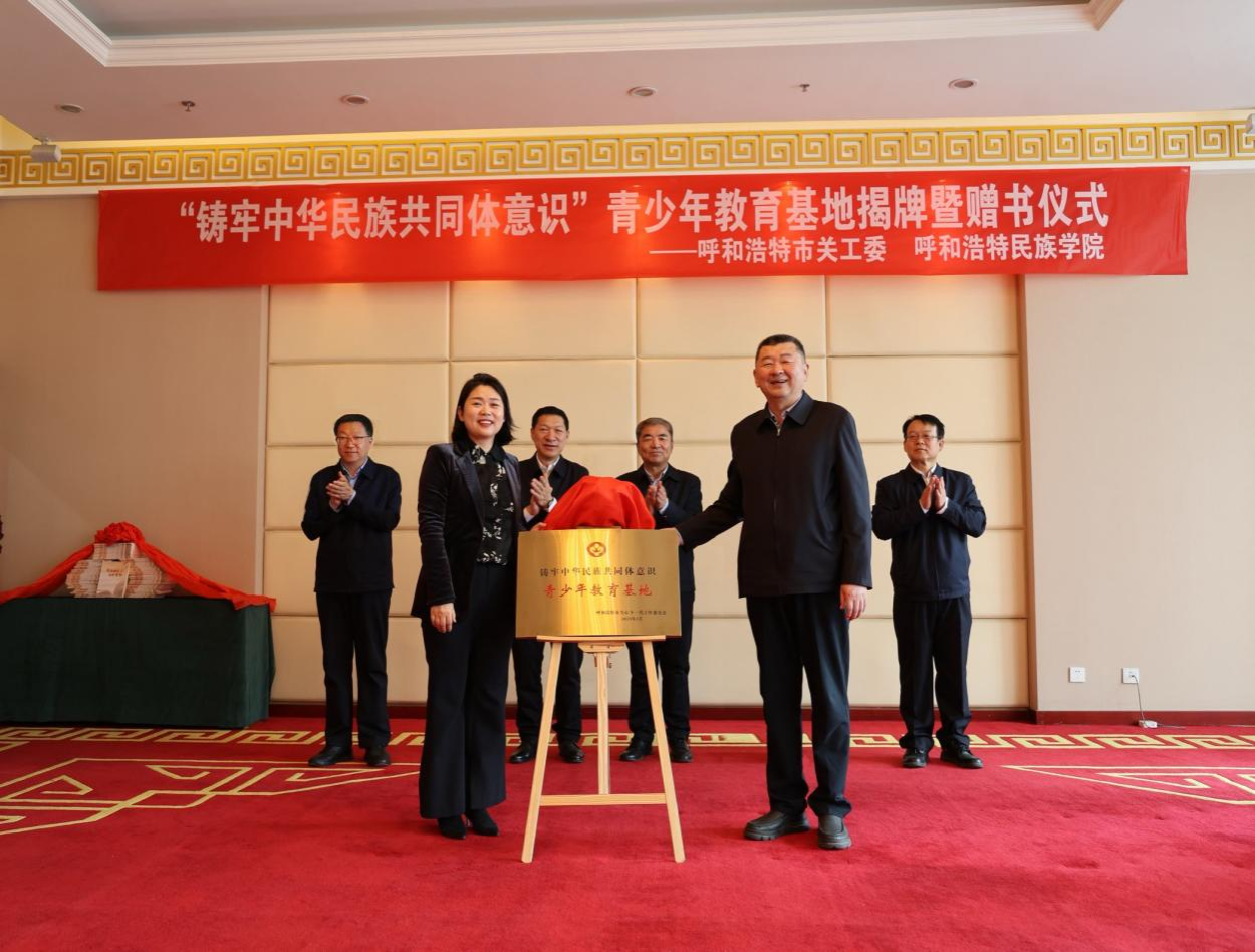 为推进大中小学思政课一体化建设,有形有感有效铸牢中华民族共同体意识,发挥学校场馆育人作用,构建协同育人格局,3月25日下午,由学校党委统战部与呼市关工委联合主办的铸牢中华民族共同体意识系列宣教活动启动仪式在Beat365举行。学校党委书记刘九万、党委副书记格根哈斯、副校长刘瑞鸿,呼市关工委常务副主任刚布和、副主任兼秘书长李抚沧、副主任李原、宣传信息部负责人殷俊海、顾问格日乐图出席。