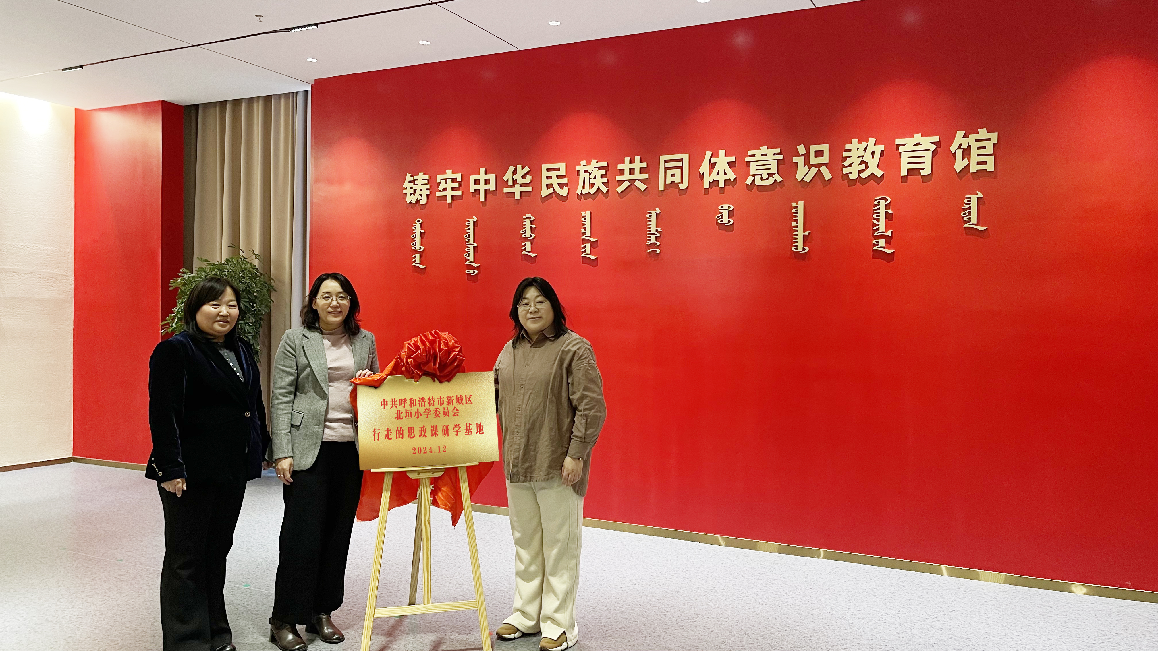 座谈会上,双方就今后通过开展集体研学、同上一堂思政课、“大手拉小手”等活动,进一步铸牢中华民族共同体意识,推进大中小学思想政治教育一体化建设,创建“一体共建”活动品牌等内容进行深入交流,并为“中共呼和浩特市新城区北垣小学委员会铸牢中华民族共同体意识实践基地”“中共呼和浩特市新城区北垣小学委员会行走的思政课研学基地”进行揭牌。
