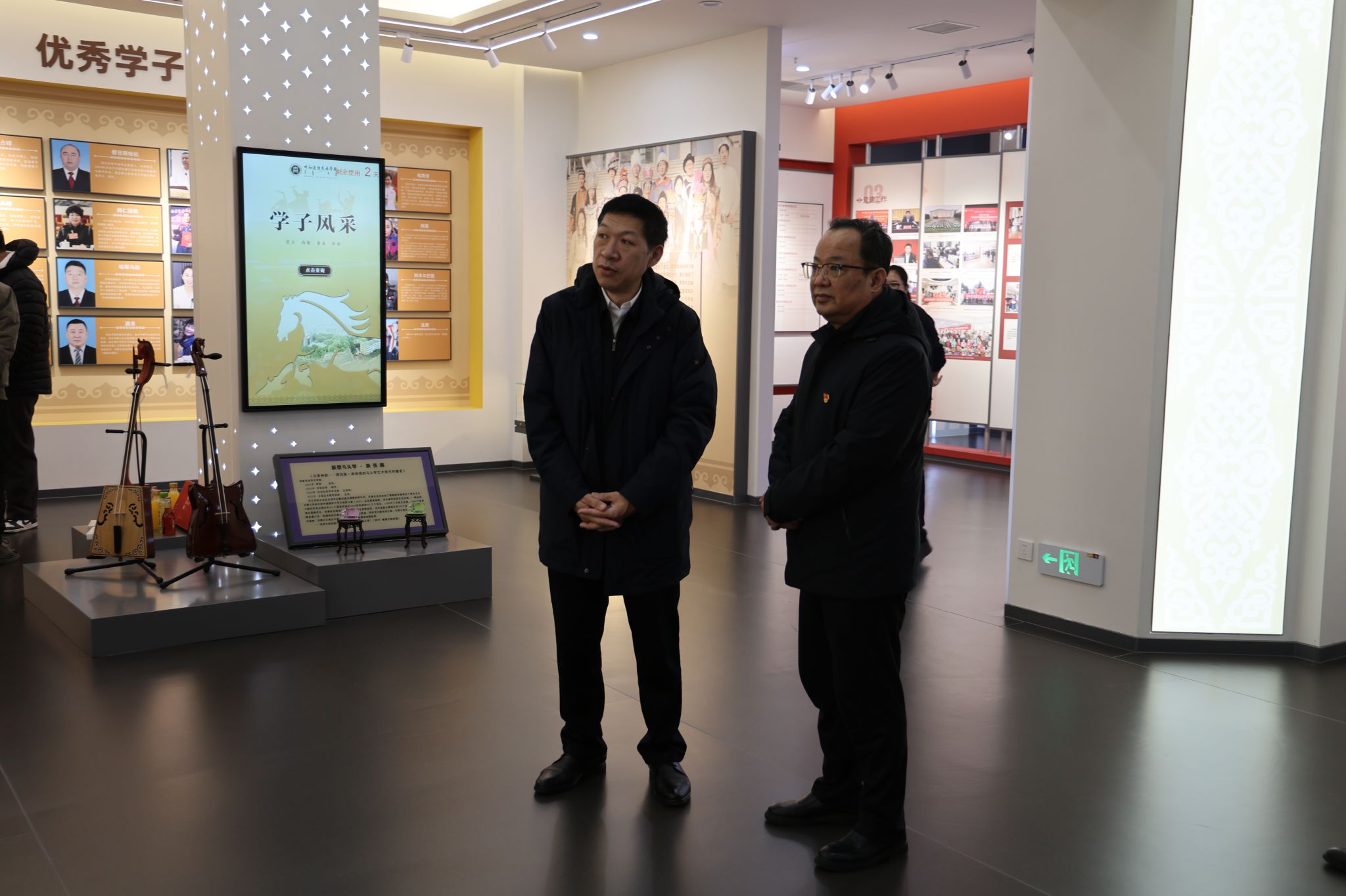 在学校校史馆、铸牢教育馆、非遗体验馆等场馆,党员们通过实地参观、观看展览、听取讲解等方式,深入了解各民族在长期交流交往交融过程中共同团结奋斗、共同繁荣发展的历史脉络和生动实践,从一幅幅非遗作品中深刻感受北疆文化魅力,带领大家穿越时空,重温了新中国波澜壮阔的发展历程,尤其是直观感受内蒙古作为“模范自治区”在民族团结进步事业方面所取得的伟大成就。