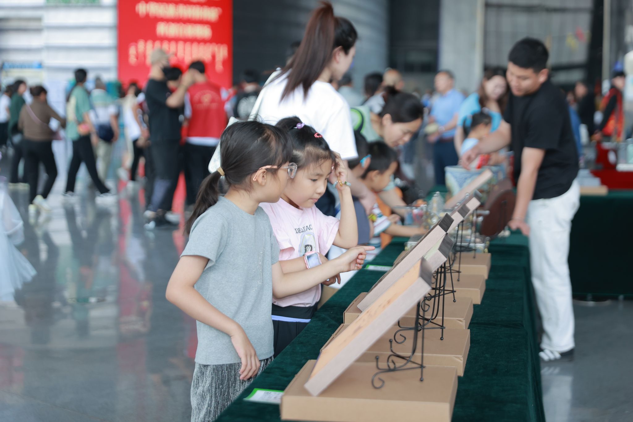 学校展陈专区展出了美术学院党外知识分子、留学归国人员、非遗传承人制作的毡画、皮画、金银措工艺品等作品,以及音乐学院师生在中国国际大学生创新大赛(2023)中的金奖项目——“马背神韵”马头琴作品。活动现场发放了《关于全面贯彻铸牢中华民族共同体意识主线的若干措施》《内蒙古自治区促进民族团结进步条例》等宣传手册。一曲曲悠扬的马头琴声,一件件精美的艺术展品,吸引了众多游客和家长、孩子细细参观体验交流。