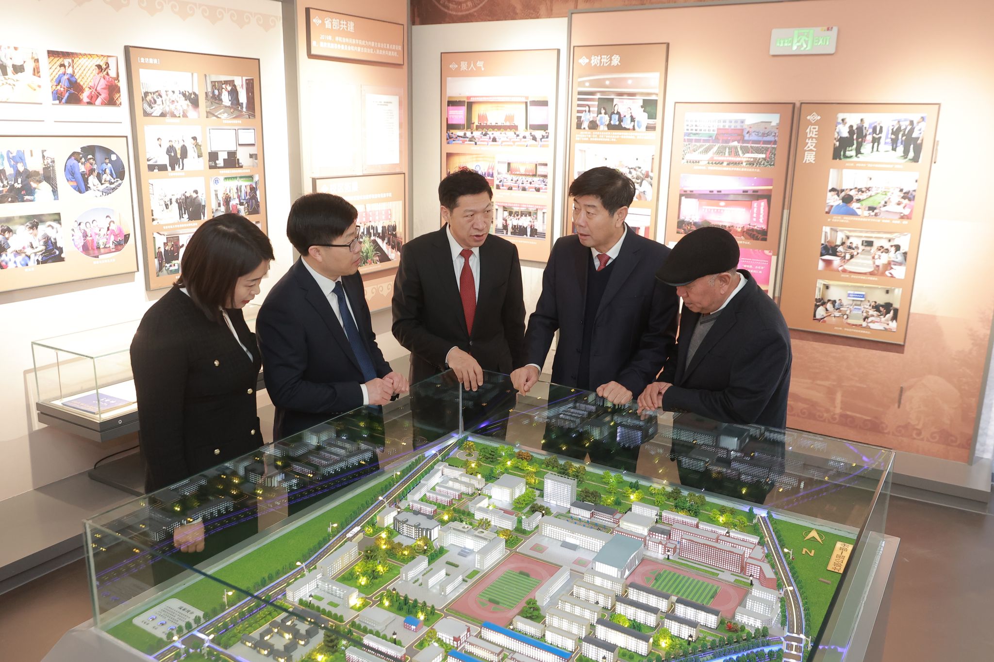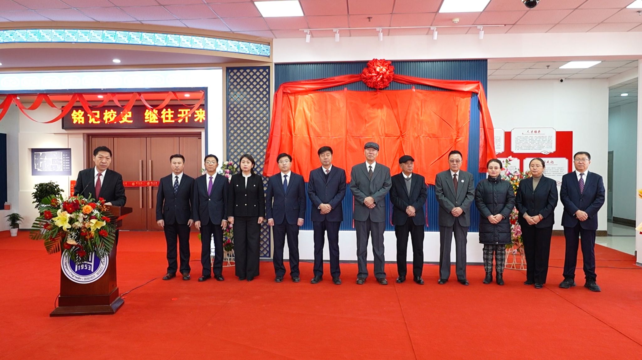 刘九万在致辞中对关心支持学校发展的老领导、校友和社会各界人士表示衷心感谢。他指出,1953年学校成立以来承担起培养民族地区人才、传承中华优秀传统文化的历史重任。在70年的办学进程中,学校感恩奋进跟党走,培养的毕业生扎根内蒙古大地,为区域经济社会发展、民族团结进步、边疆繁荣稳定作出了应有的贡献。今天建成开放的校史馆,是学校奋斗历史的缩影,传递着学校的教育理念和办学精神,呈现了学校艰苦创业、改革建设、创新发展各个时期的精神面貌。他要求,广大师生要始终不忘出发的初心,坚定弘扬民族团结的信念;要始终不忘育人的初心,坚守传道授业的本分;要始终不忘为民的初心,坚持团结奋进的追求;要始终不忘进取的初心,坚持坚韧求真的执着。