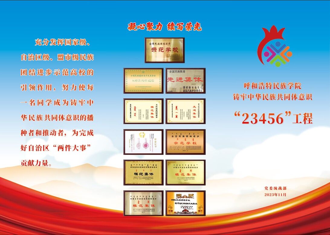 充分发挥国家级、自治区级、盟市级民族团结进步示范高校的引领作用,努力使每一名同学成为铸牢中华民族共同体意识的播种者和推动者,为完成好自治区“两件大事”贡献力量。