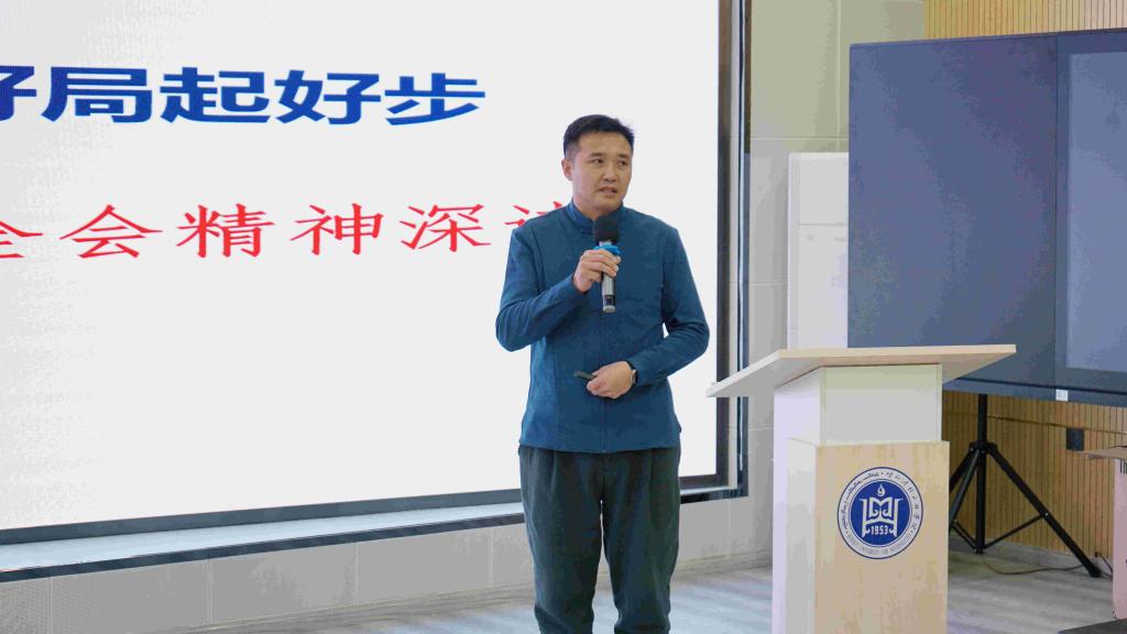 学习会上,由学校党委宣讲团、自治区思想政治工作《张海峰名师工作室》、自治区中青年骨干项目《思政工作室》成员张海峰老师,结合党的十九届五中全会重大意义,从《中共中央关于制定国民经济和社会发展第十四个五年规划和二〇三五年远景目标的建议》的规划起草、内容亮点、突出议题与实现路径等四个方面,作题为《同心同德 凝心聚力 汇集全体智慧与力量 为开启社会主义现代化国家新征程开好局起好步》的专题辅导。