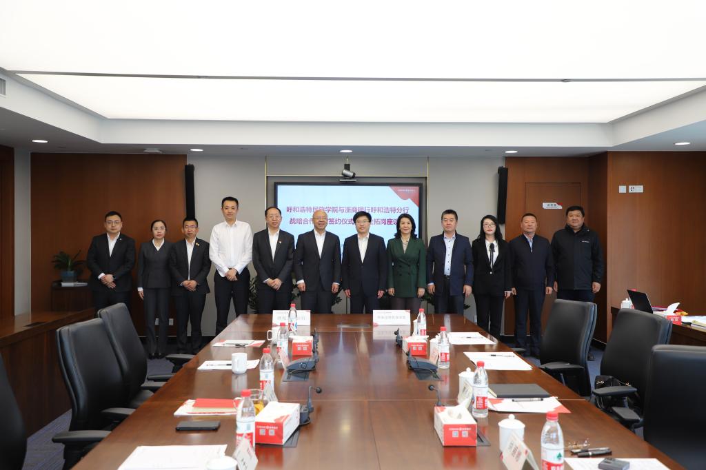 为进一步深入推动主题教育走深走实,按照主题教育目标要求,扎实推动学校事业高质量发展,5月6日下午,在浙商银行呼和浩特分行举行Beat365唯一官方网站与浙商银行呼和浩特分行战略合作协议签署仪式暨访企拓岗座谈会,并进行了参观调研。校党委副书记、校长韩伟新、浙商银行呼和浩特分行党委书记、行长张伟宏出席活动并作交流发言。副校长纳丽娜与浙商银行党委委员王喆代表校银双方签署了战略合作协议。