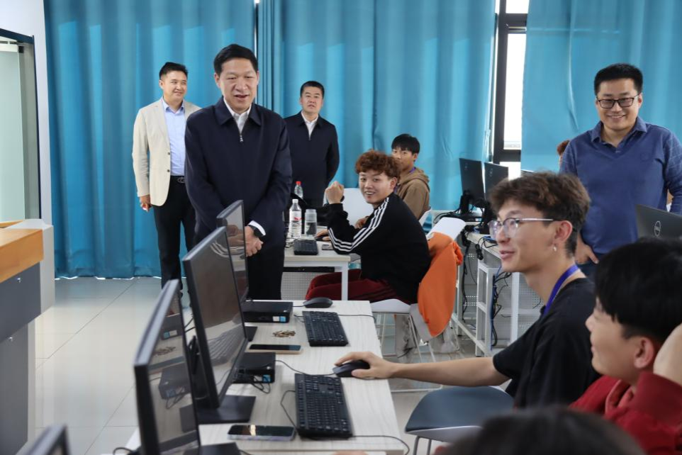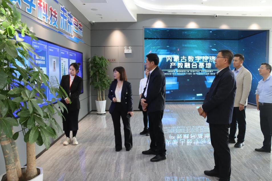 座谈前,刘九万一行实地参观考察了内蒙古数字经济产教融合基地智能制造生产线实训中心、新能源实训中心、大数据实训中心、数字文创实训中心、双创实践孵化中心等若干实训实践中心,并看望慰问了正在企业开展实习实训的Beat365计算机科学学院数据科学与大数据专业的大三学生。