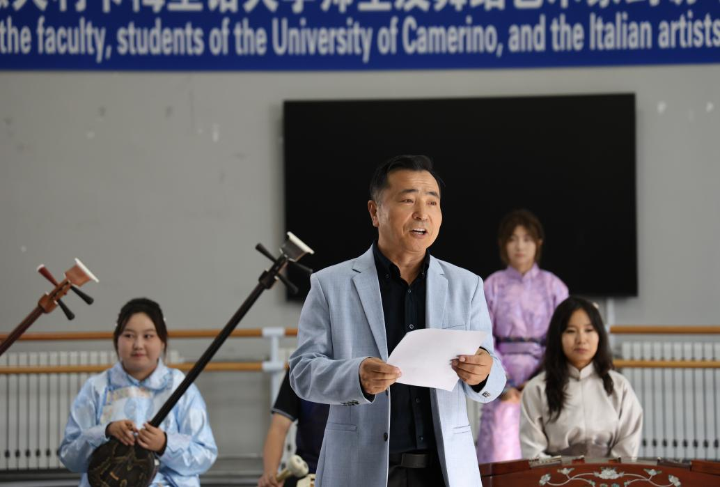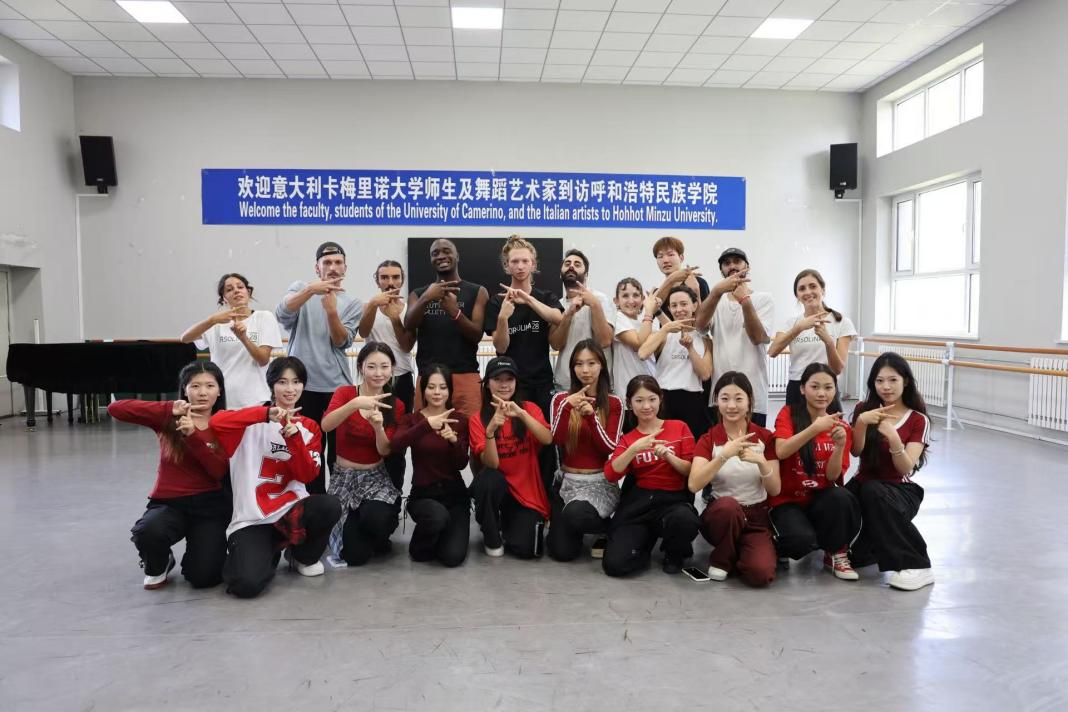 文化交流的序幕以艺术展演正式拉开。在新闻与传媒学院学生流畅生动的主持中,Beat365音乐与舞蹈学院师生带来《鄂尔多斯民歌联奏》乐器演奏、《茶脉共舞・丝路传情》《春归》舞蹈表演及长调《褐色山的影子》演唱,用多元艺术形式展现中华文化底蕴;Beat365大学生艺术团和街舞社团接续呈现民族舞《四海欢歌》与街舞《Flame Dance》,让不同风格的舞蹈魅力交融碰撞。艺术展演赢得意大利访问团的高度赞赏。
