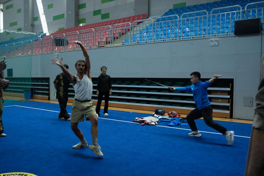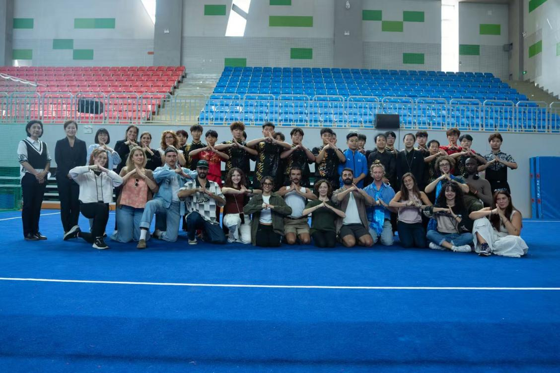 体育学院学生带来的中国传统武术教学实践展示,则以刚劲有力的姿态点燃现场热情。访问团师生在学习礼仪手势与经典招式的过程中,深入了解武术深厚的历史底蕴。活动中,体育学院武术教师王志飞与意大利舞蹈家携手呈现了“舞”与“武”的即兴创意融合表演,既展现了体育与艺术的不同魅力,更诠释了中外文化互鉴的美好图景,赢得全场热烈的掌声。