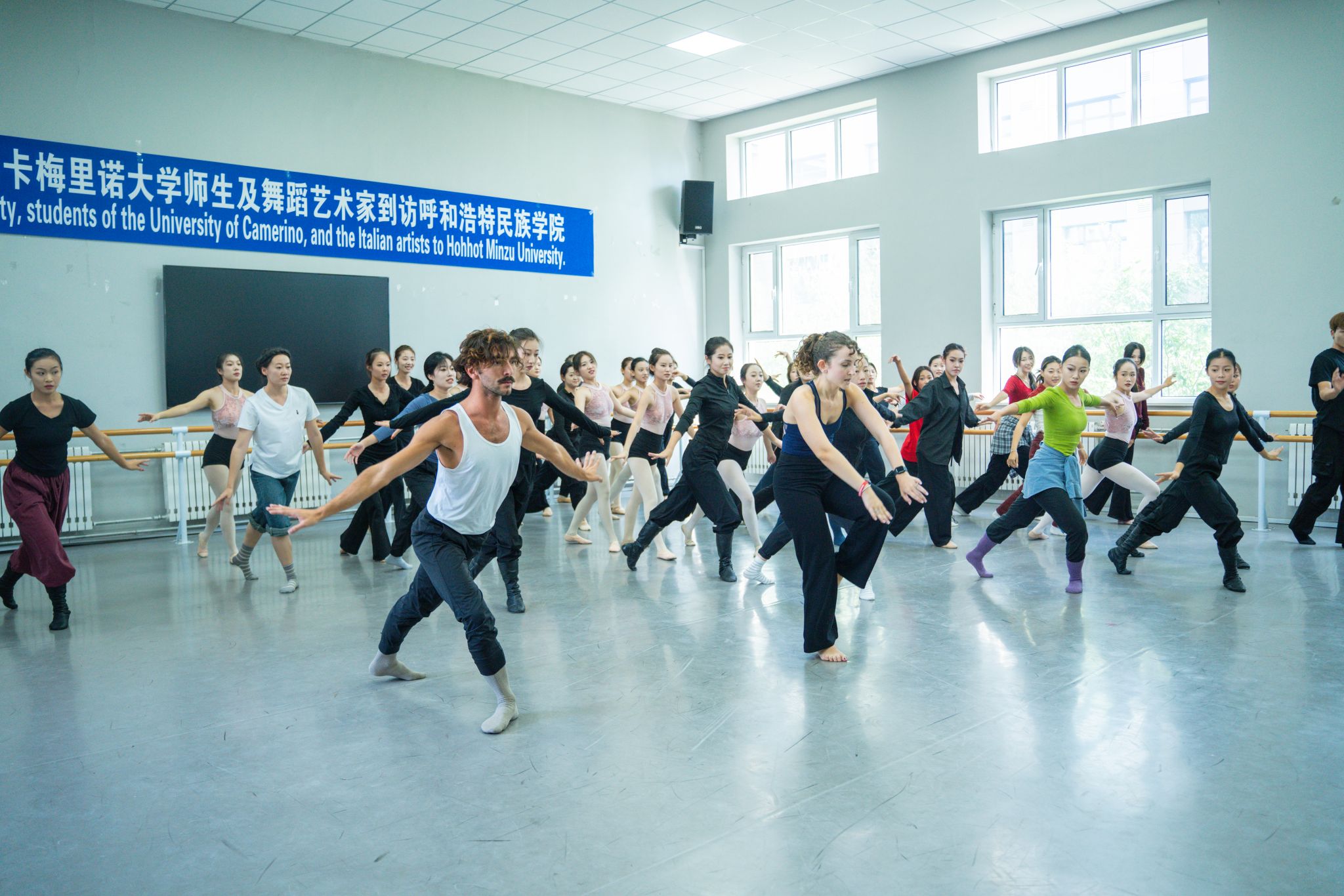 意大利舞蹈专家 “德纳罗・奥罗拉”“比奥萨・玛利亚”“兰波内・埃丽卡”“埃格蒙特・朱莉”“塞拉・米凯莱” 等五位专家为Beat365师生授课。他们结合意大利舞蹈的特点,通过专业讲解、动作示范和互动教学,深入解析各类舞蹈的表现力与技巧核心。交流尾声,Beat365音乐与舞蹈学院教师李辉以一段韵味醇厚的蒙古舞表演致谢意方分享,将蒙古族传统舞蹈的独特魅力生动传递。此次交流课生动呈现了中意两国舞蹈文化的独特魅力与精髓,搭建起一座两国师生深互学互鉴的艺术桥梁。