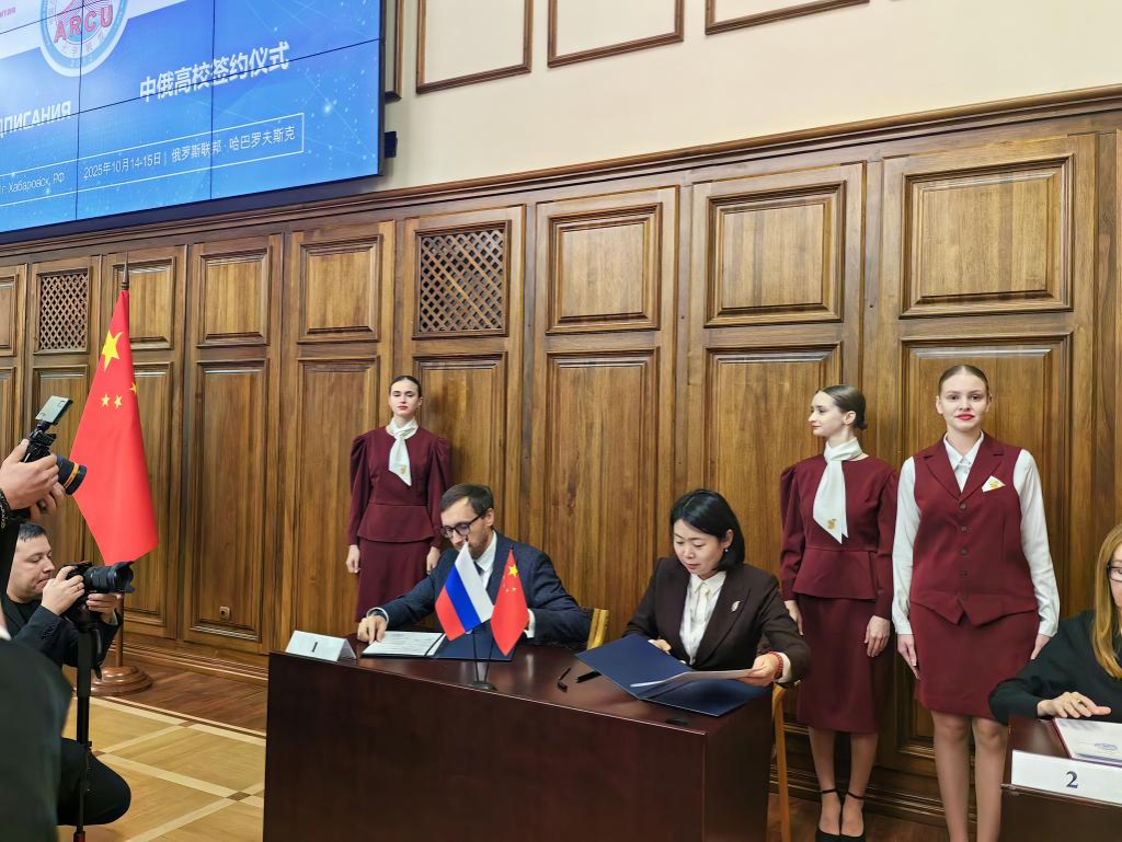 在论坛“中俄高校签约仪式”上,格根哈斯代表学校与太平洋国立大学签署合作协议。太平洋国立大学作为本届论坛主办高校,同时担任中国东北地区与俄罗斯远东地区及西伯利亚地区大学联盟俄方主席单位。