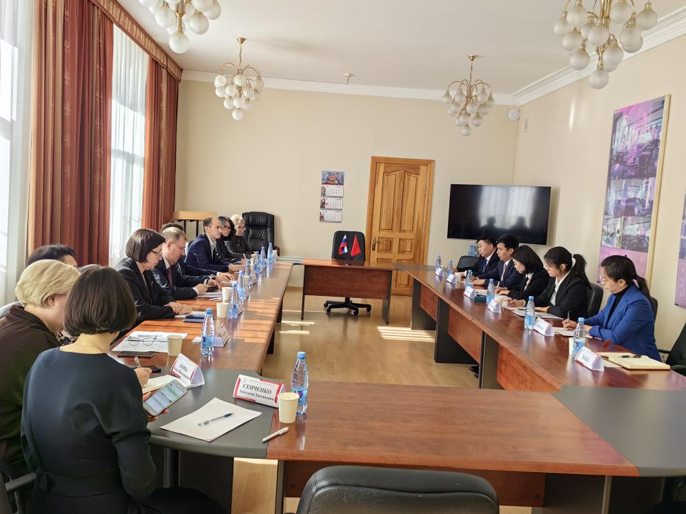 代表团先后访问了太平洋国立大学、哈巴罗夫斯克国立文化学院及符拉迪沃斯托克国立大学,分别与太平洋国立大学校长马尔芬·尤里·谢尔盖耶维奇、哈巴罗夫斯克国立文化学院校长斯科里诺夫·谢尔盖·涅斯捷罗维奇、符拉迪沃斯托克国立大学第一副校长兼代理校长戈里科夫·谢尔盖·尤里耶维奇进行了务实交流,就推动学生联合培养、师生交流互访、开展联合科研项目等达成多项共识,为下一步正式签署校校合作协议、建立长效合作机制奠定了坚实基础。