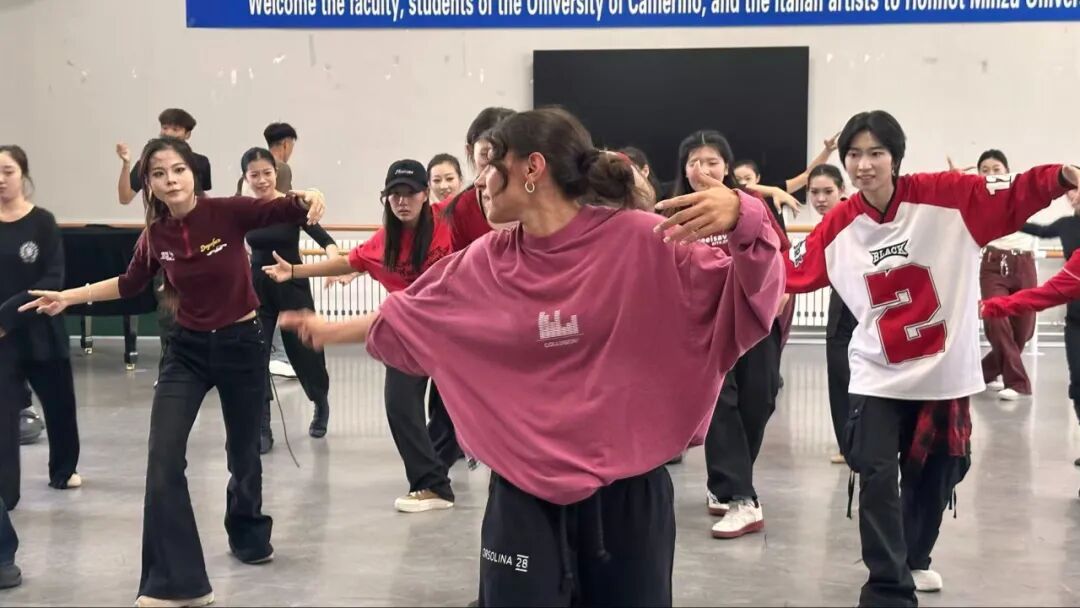 随后,街舞社团呈现了节目《Flame Dance》,巧妙地将潮流街舞元素与艺术创意相结合,以青春洋溢的姿态诠释了多元文化的碰撞与共融。互动环节更将氛围推向高潮,Beat365街舞社团成员与意大利青年舞蹈演员携手登台,在默契配合中共同演绎精彩街舞。现场掌声、欢呼声此起彼伏,热烈氛围持续升温。