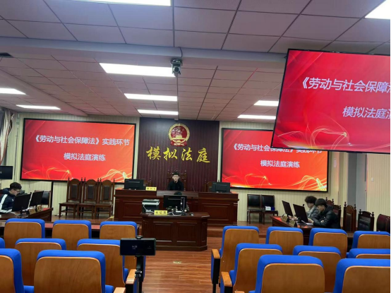 《劳动与社会保障法》课程实践环节中的模拟庭审演练(代理人赵金瑞为仲裁员角色)