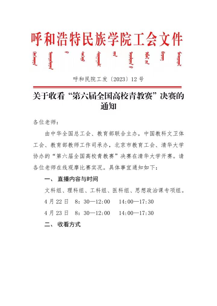 关于收看“第六届全国高校青教赛”决赛的通知