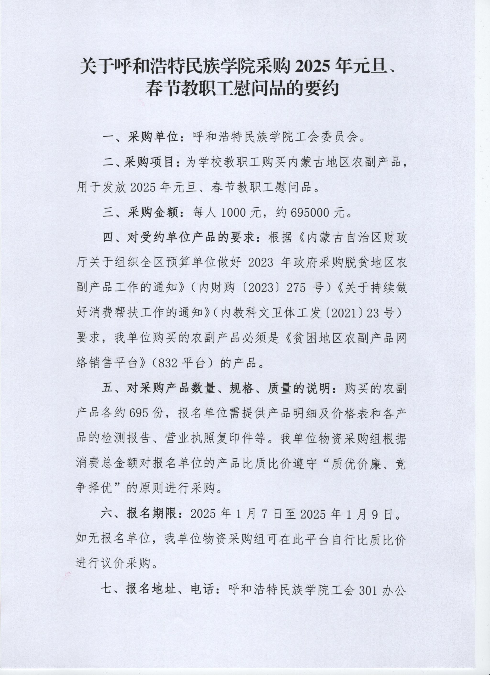 关于Beat365唯一官方网站采购2025年元旦、春节教职工慰问品的要约