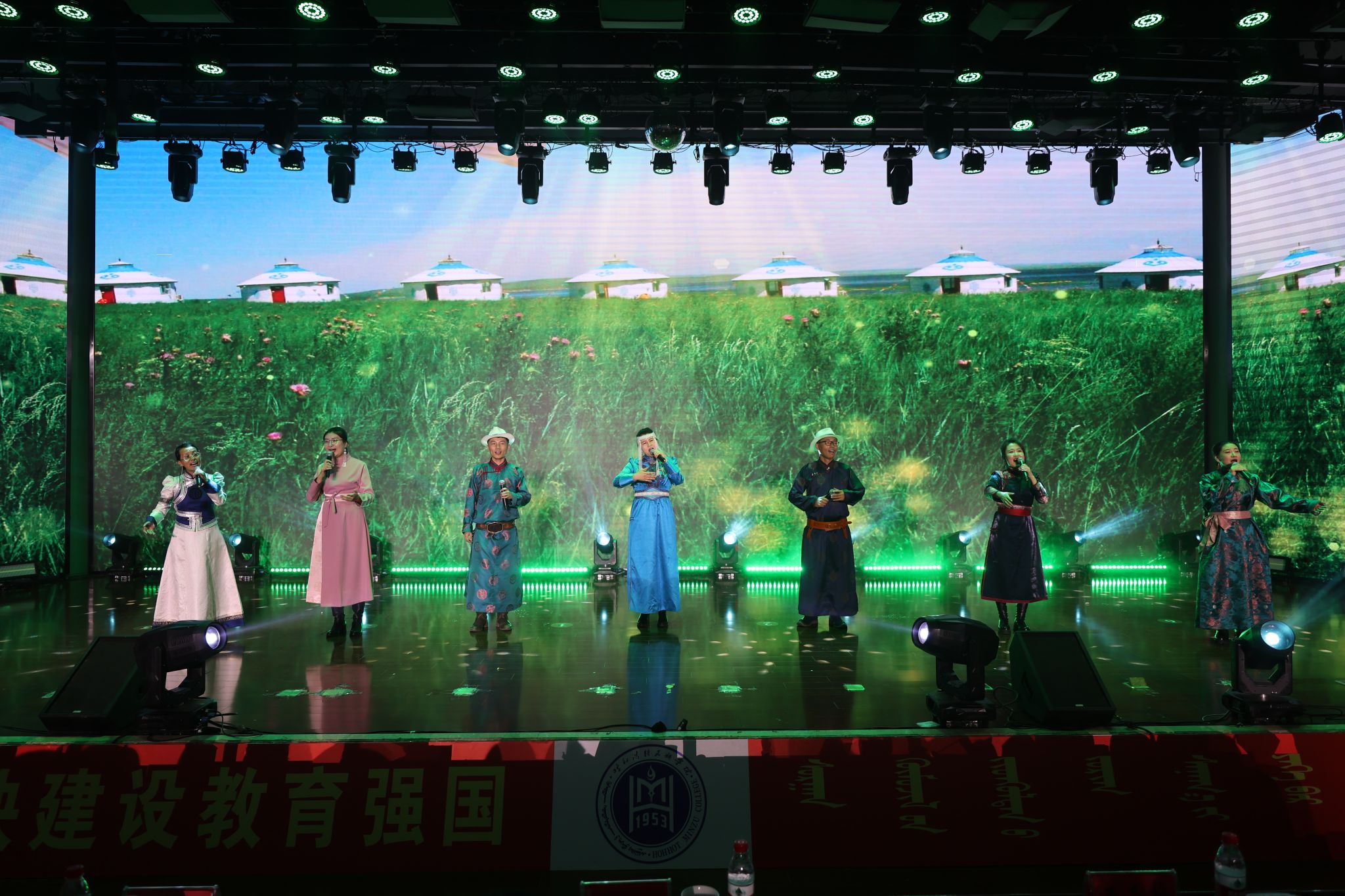 师生代表精心准备的《有我》《献给敬爱的老师》《民歌联唱》《炫动的韵律》《辽阔美丽的草原》《守望相助》《阿穆尔赛罕》《弹起我心爱的好必思》《爱在内蒙古》等各类节目精彩不断,将庆祝表彰大会的愉悦氛围推向高潮。
