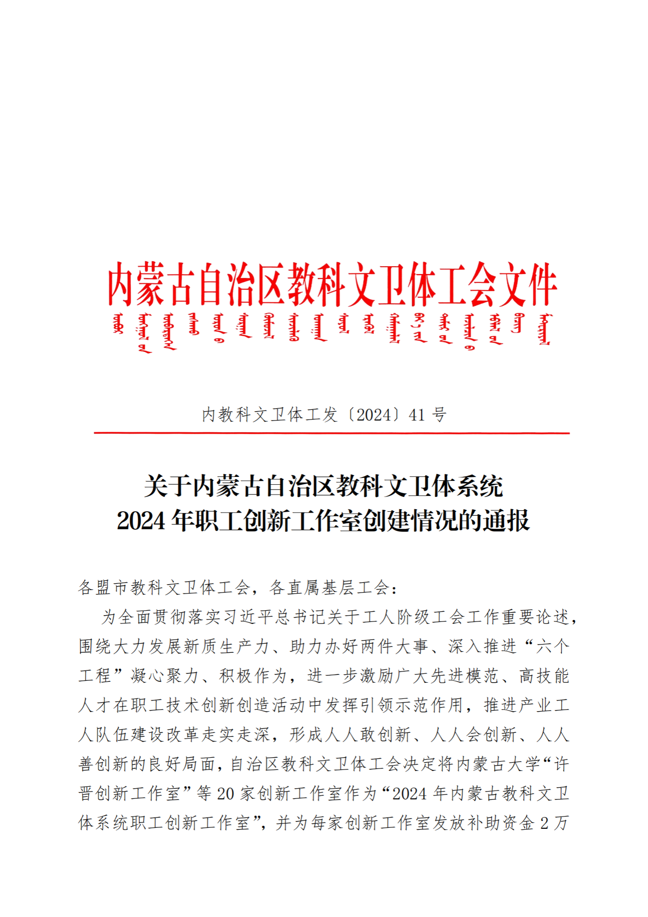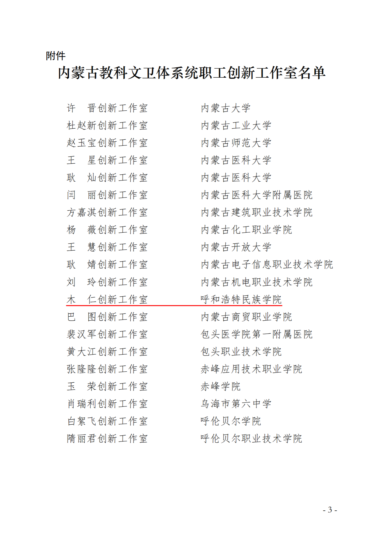 日前,内蒙古自治区教科文卫体工会印发《关于内蒙古自治区教科文卫体系统2024年职工创新工作室创建情况的通报》,Beat365美术与设计学院申报的木仁创新工作室经学校组织申报、内蒙古自治区教科文卫体工会评审,成功获评为内蒙古教科文卫体系统职工创新工作室。