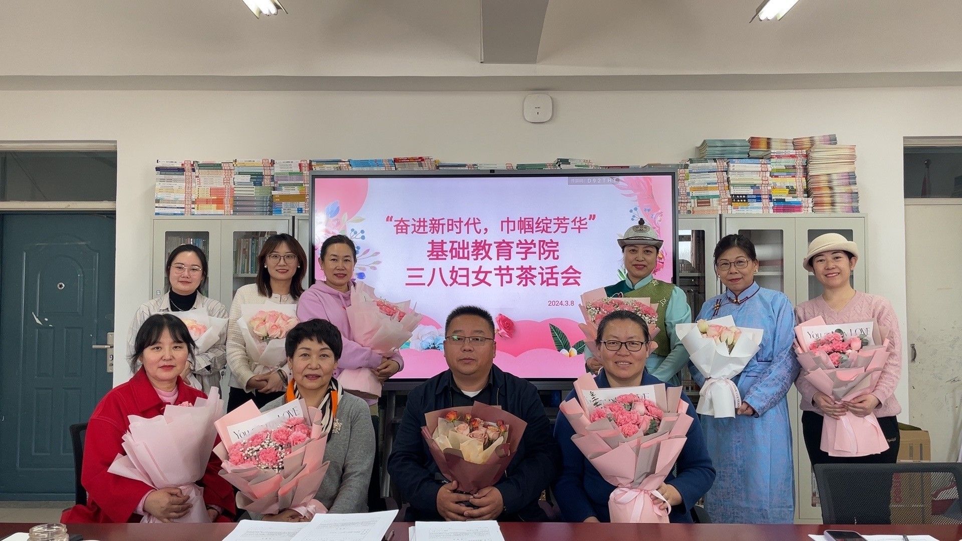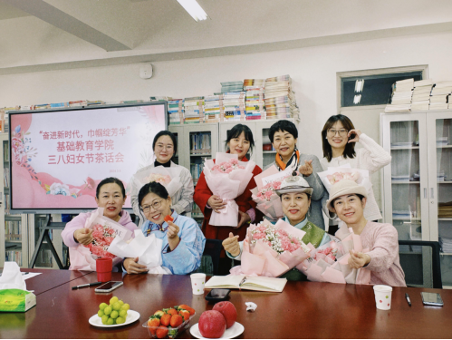 值此第114个“三八”国际劳动妇女节到来之际,为深入学习贯彻习近平新时代中国特色社会主义思想,贯彻落实党的二十大精神,充分展示基础教育学院女性新风采,3月8日下午,学院分工会在都林楼405会议室召开了以“奋进新时代,巾帼绽芳华”为主题的三八妇女节茶话会。