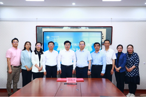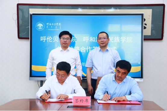 6月14日,学校党委副书记、校长韩伟新带队访问呼伦贝尔学院并签署全面战略合作框架协议。呼伦贝尔学院党委副书记、校长张玉柱,党委委员、副校长敖特根参加座谈和签约。校党委委员、副校长高喜天,呼伦贝尔学院党委委员、副校长敖特根分别代表双方签署全面战略合作框架协议。签约仪式由敖特根主持。