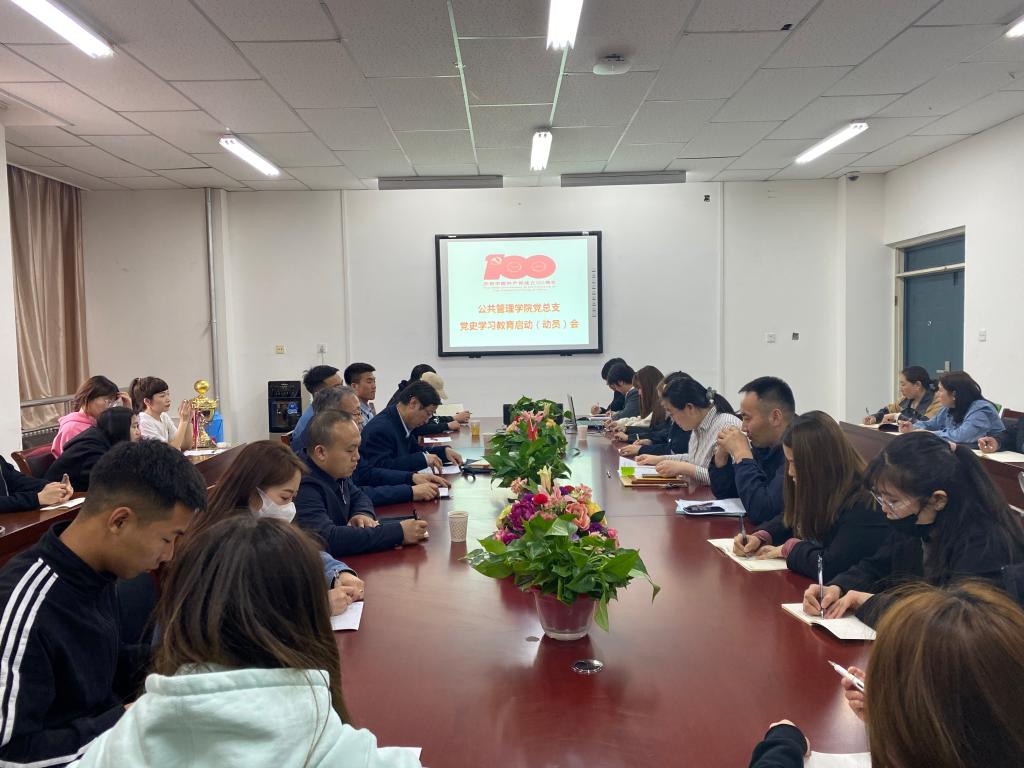 启动会上额尔敦格日乐副书记宣布了公共管理学院党史学习教育实施方案,并作了动员讲话。要求强化主体责任、组织责任、落实责任,严肃纪律,做好宣传报道。学校党史学习教育第二督导组组长哈斯同力嘎充分肯定学院党史学习教育工作方案并对我学院下一步党史学习教育提出了八点要求。