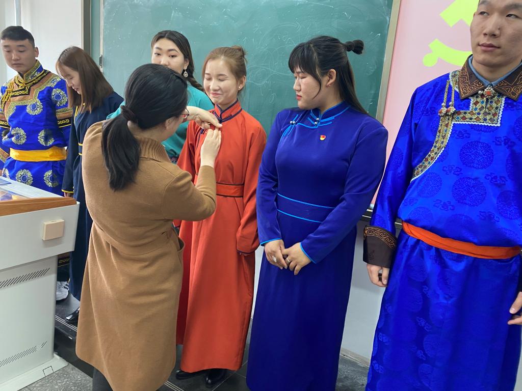 活动中,党总支副书记额尔敦格日勒为学生党员亲自发放并佩戴党徽,介绍了《关于党员佩戴党员徽章》文件,向党支部成员发出“戴党徽亮身份、树形象做表率”的倡议,要求学生党员不断提升服务学生的能力,自觉践行“四个合格”,接受群众监督,用实际行动发挥党员先锋模范带头作用。