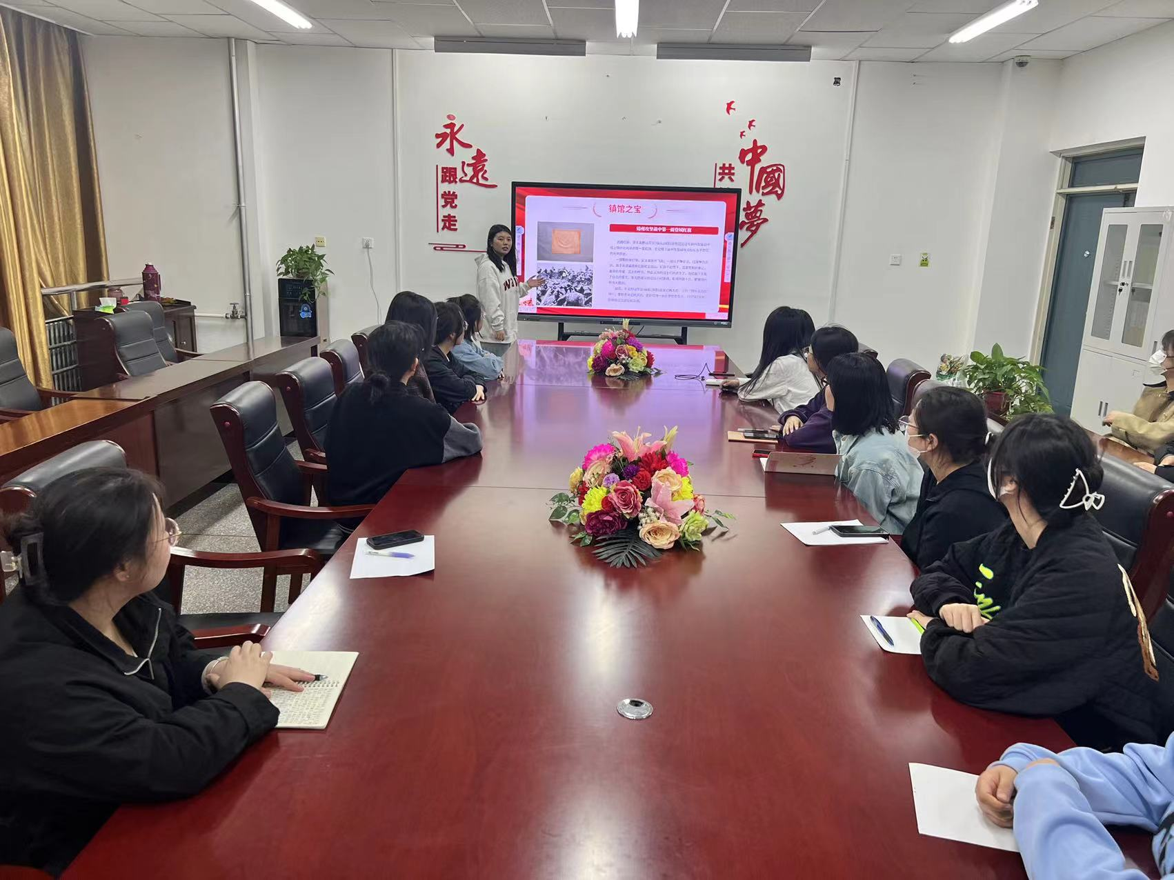 支部党员武宇荣以《战斗英雄的小挎包》为题,通过杨连弟生平与事迹、小挎包背后的故事、杨连弟精神内涵与价值体现、当代青年如何学习践行杨连弟精神等四个部分与大家进行深入探讨。
