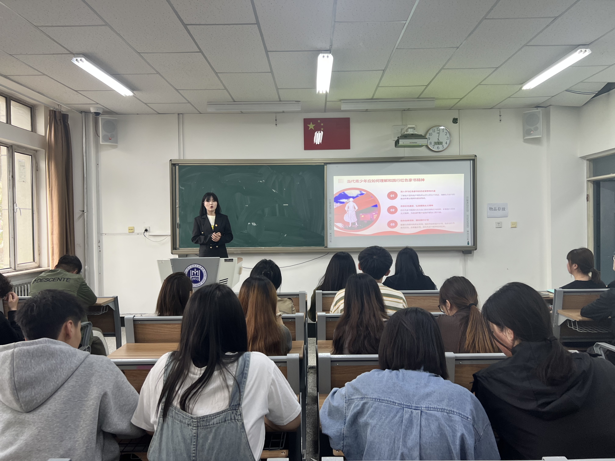 在诵读红色家书环节,学生党员代表周宇欣、苏日娜、沈明亮等分享了革命先烈王稼祥《致堂弟王柳华的家书》、杨开慧《致杨开明红色家书》及谢觉哉家书。家书中不仅包含了革命烈士对亲人的愧疚与思念,更体现了他们对革命事业的坚定,舍小家顾大家的奉献精神。一封封红色家书让支部党员们体会到了英雄们强烈的爱国主义情感和为革命目标奋斗的坚定信念,也让支部党员们深深感慨到如今的和平来之不易。