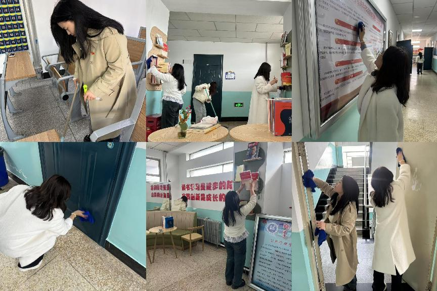 本次活动巧妙利用课间、午休等碎片时间,走进尚智楼一楼的教室、二楼办公区走廊、学院宣传栏、党员读书角等区域,仔细清理每一处角落,营造了一个整洁舒适的上课环境。
