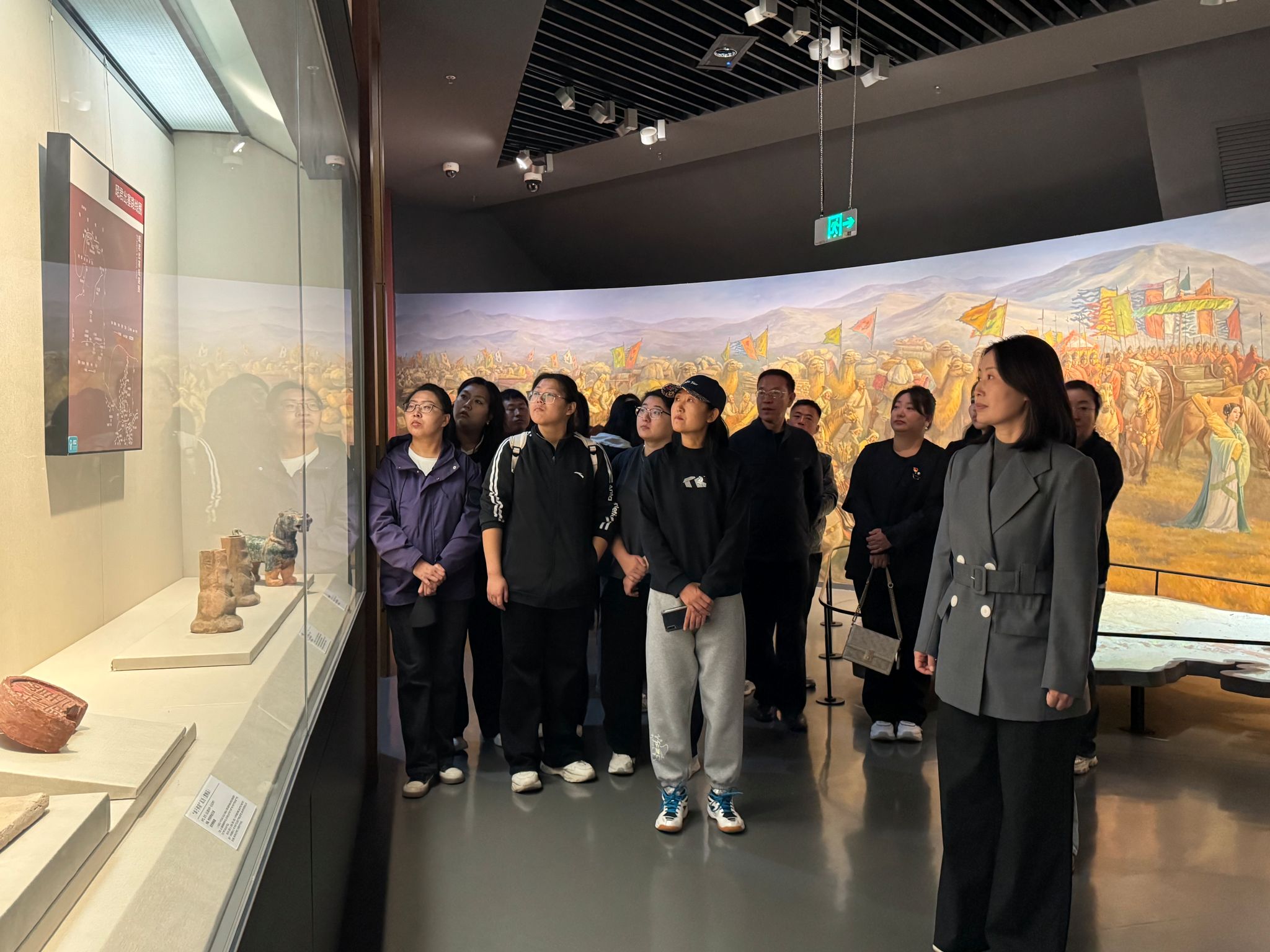 在专业讲解下,全体人员依次参观了“昭君出塞”历史展区、匈奴文化陈列区及民族团结主题展厅。通过珍贵文物、场景复原和史料,大家深入了解了昭君促进民族交融的历史贡献,深刻感悟了中华民族“多元一体”的发展历程和“民族团结一家亲”的深厚传统。
