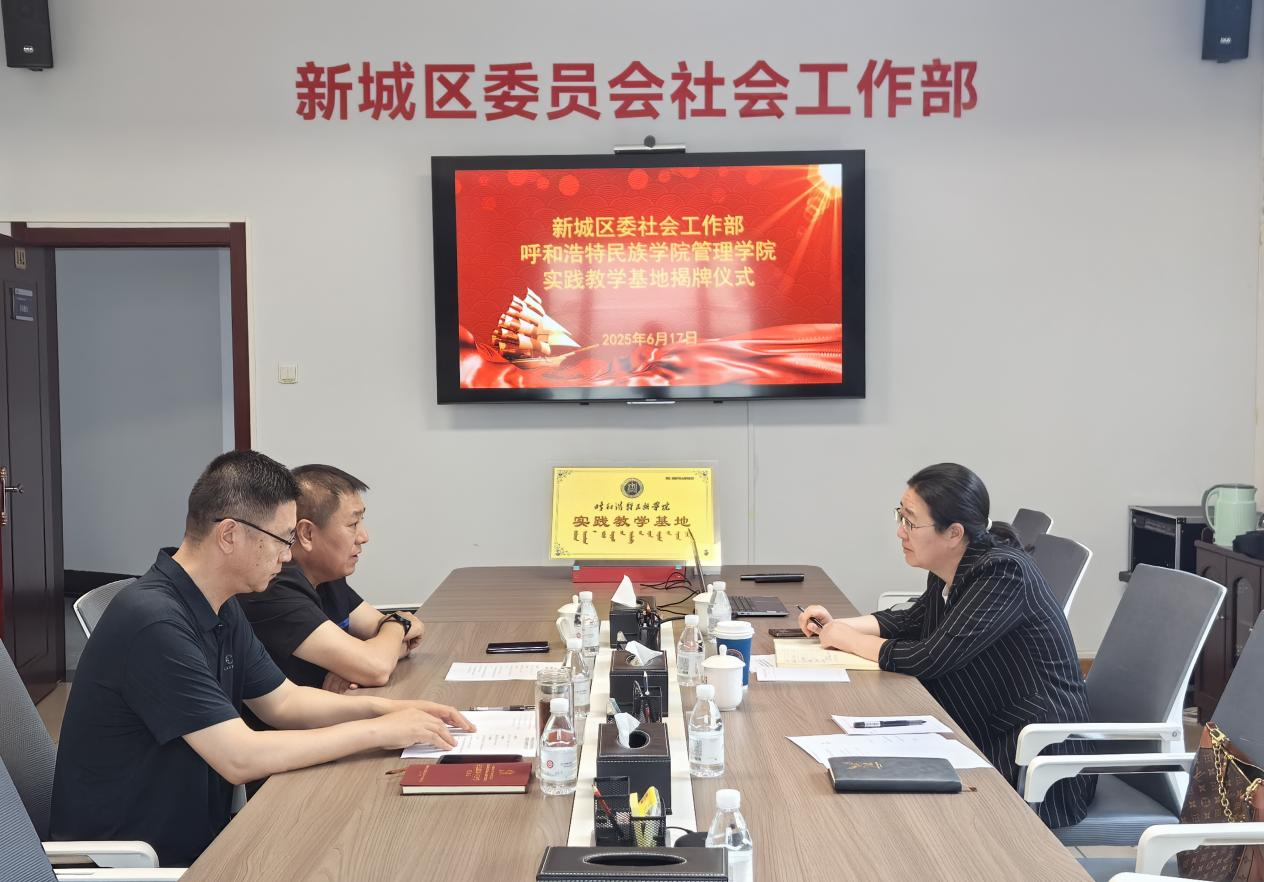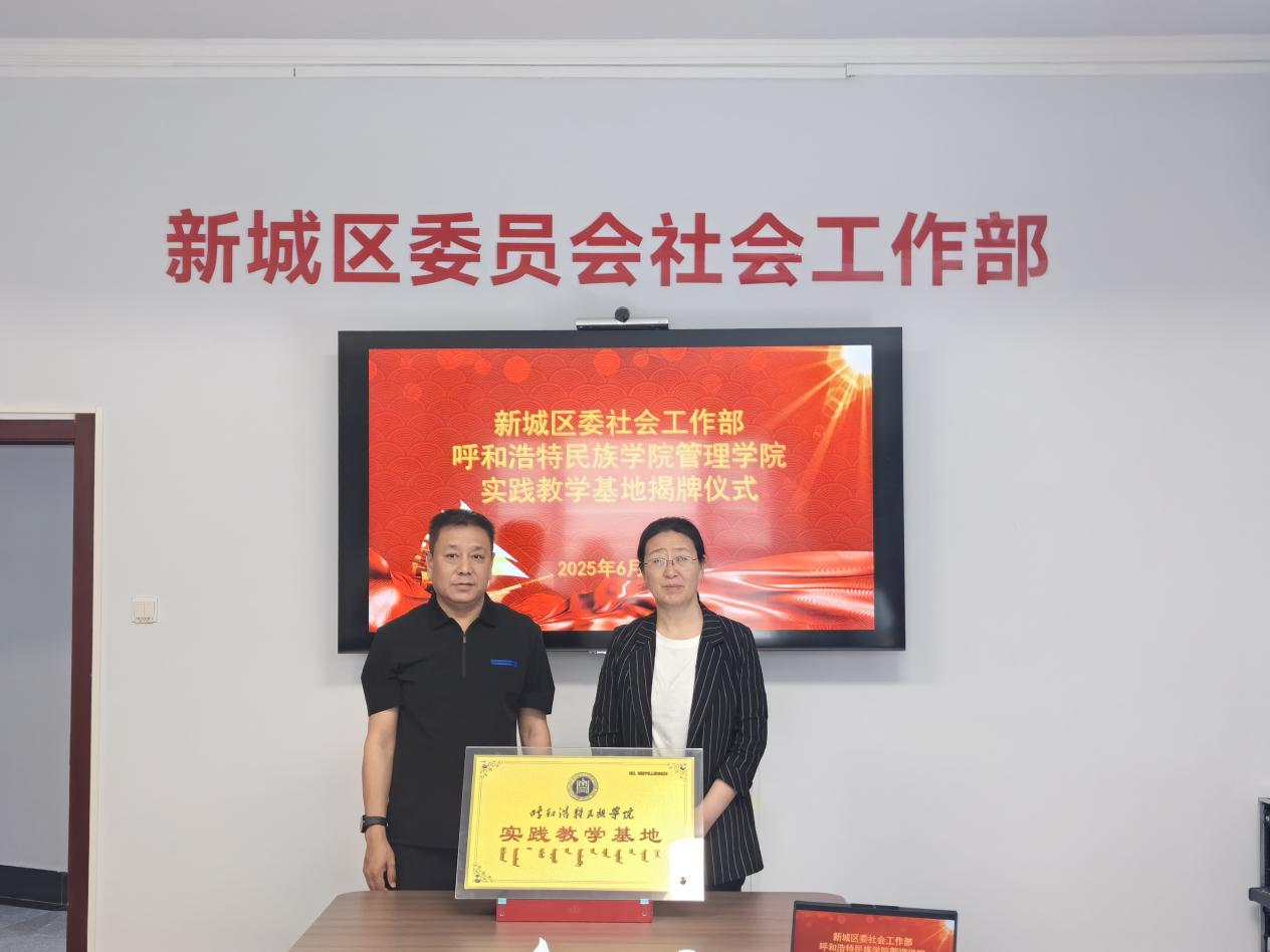 6月17日,管理学院副院长额尔敦格日乐及教学秘书孙浩楠一行两人前往新城区委员社会工作部举行实践教学基地举牌仪式。此次合作旨在加强校地联动,充分发挥高校专业优势与社会工作部的实践资源,共同推动社会工作领域人才培养与基层治理创新,为区域社会发展注入新活力。