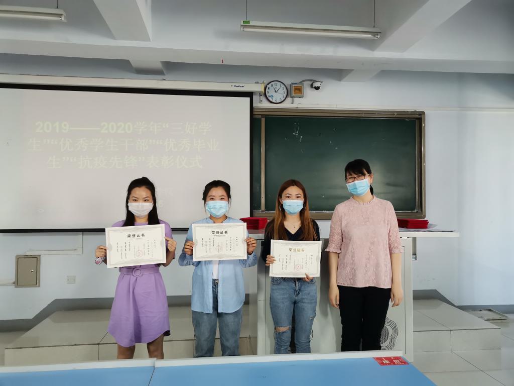 为学习贯彻习近平新时代中国特色社会主义思想和党的十九届四中全会精神,深入贯彻落实全国高校思想政治工作会议精神和全国教育大会精神,树立大学生先进典型,充分发挥榜样示范作用,鼓励广大学生勤奋学习、积极进取、成才报国,经学校研究决定,在2020届毕业生顺利返校之际,于6月2日上午表彰了公共管理学院2019——2020学年“三好学生”“优秀学生干部”“优秀团干部”“优秀毕业生”和积极参加抗疫活动的“抗议先锋”。会议由党总支副书记额尔敦格日勒主持,学院领导和受表彰的毕业生共人参加会议。会上,学工办副主任宝连宣读了各项表彰决定,党总支书记海霞、院长吴宝山为受表彰学生颁发了荣誉证书。最后院长吴宝山讲话,勉励获奖学生希望同学们再接再厉,继续发扬艰苦奋斗的精神,在新环境新岗位上取得更优异的成绩。