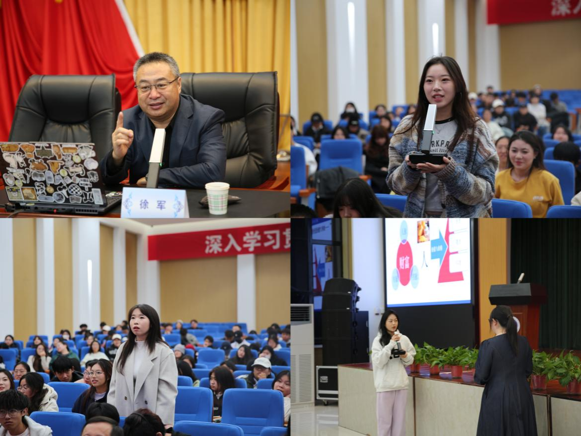 徐军教授以“何为幸福的人生”作为开场话题,巧妙地将自己的丰富经历融入其中,深入浅出地阐述了打破专业壁垒、拓宽个人视野对于个人成长的重要性。接着,他详细解析了“新质生产力”的概念,并从思维模型应用、数字技术与专业学习的融合、未来产业的“人工智能+”模式以及服务区域经济产业等多个维度,提出了独到见解。他鼓励学生勇于探索未知领域,敢于创新实践,充分利用新技术、新工具、数字技术及人工智能等前沿手段,为实现个人价值与社会价值的双重目标而努力奋斗。