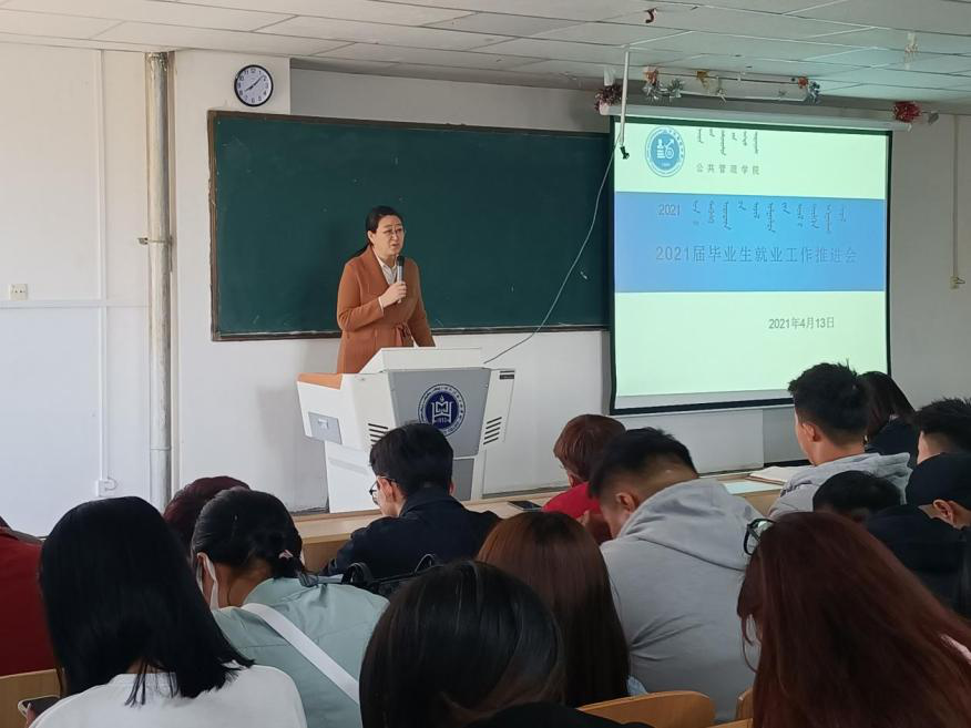 会上,党总支书记海霞传达了学校就业工作会议精神,在分析当前毕业生就业状况基础上对下一阶段工作做了安排部署,指出要高度重视、精心谋划,全员动员、精准发力,多措并举,有效推进,大力推进毕业生更充分更高质量就业。党总支副书记额尔敦格日勒进行了动员讲话,鼓励广大毕业生一要树立正确的就业观和择业观,开阔就业思路,找到未来的发展方向;二要坚定就业信心,在应聘过程中做好充分准备,保持良好就业心态,积极行动,争取更多的就业机会。最后,学院辅导员前达蒙老师围绕就业工作业务办理、就业协议书填写、“北疆就业”平台的毕业生签约和派遣等环节进行了详细讲解。
