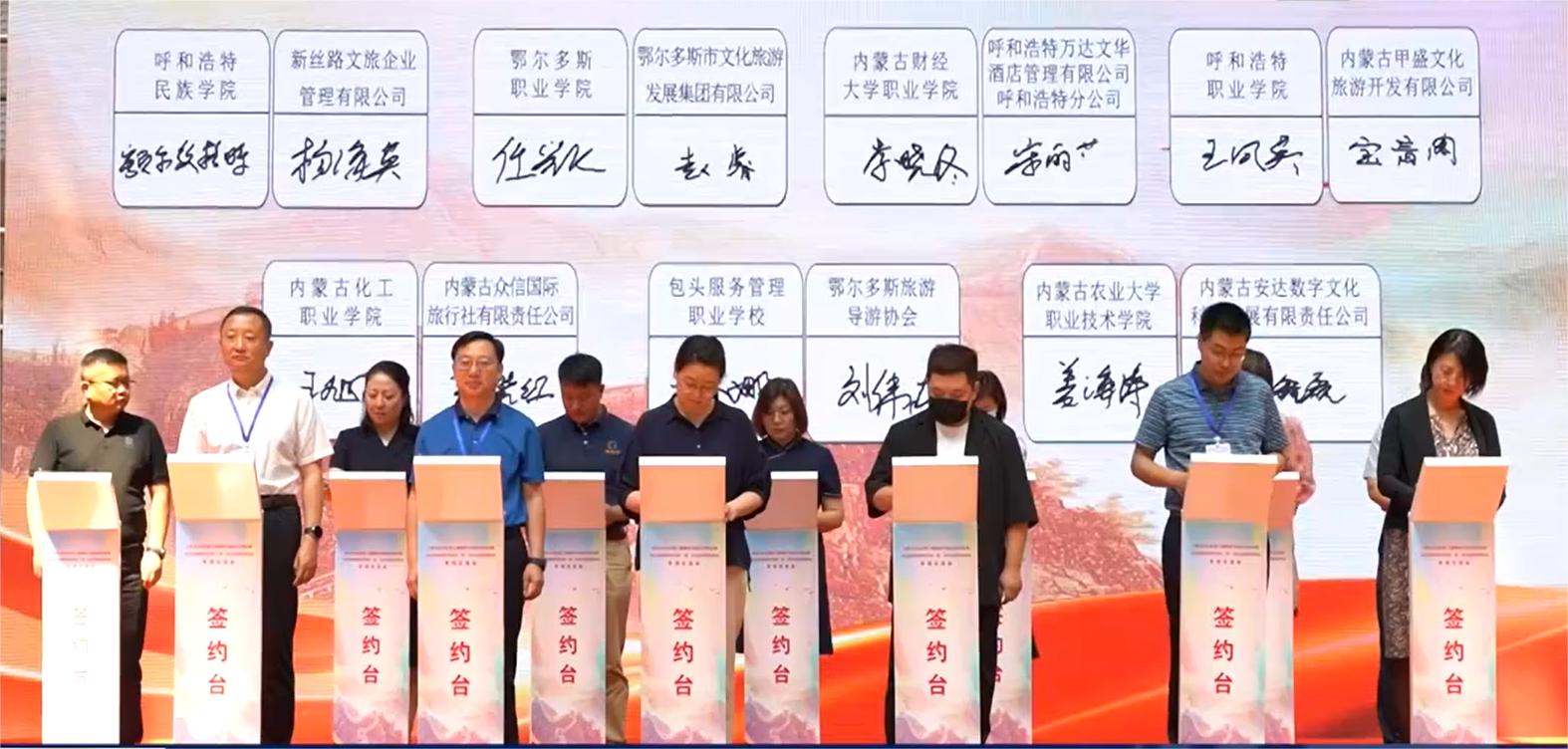 6月30日上午,内蒙古自治区文化和旅游厅、教育厅、人社厅联合举办第二届旅游行业校企对接会暨全区旅游院校书记校(院)长访企拓岗促就业专项交流会。自治区内40所高校的旅游院系负责人和200家企事业单位负责人参加了此次对接会。Beat365派公共管理学院党总支副书记额尔敦格日乐和辅导员前达蒙老师参会。会上,学院与新丝路文旅企业管理有限公司签订了实习就业意向协议,公司与学校将在顶岗实习、技能培训等方面开展协作,深化校企融合,实现企业和学校的共同发展。