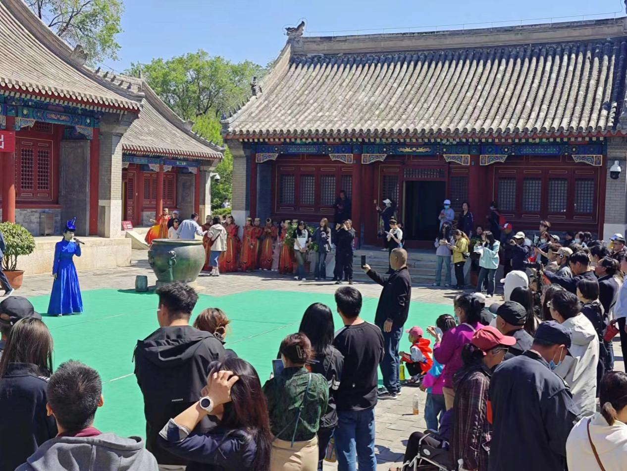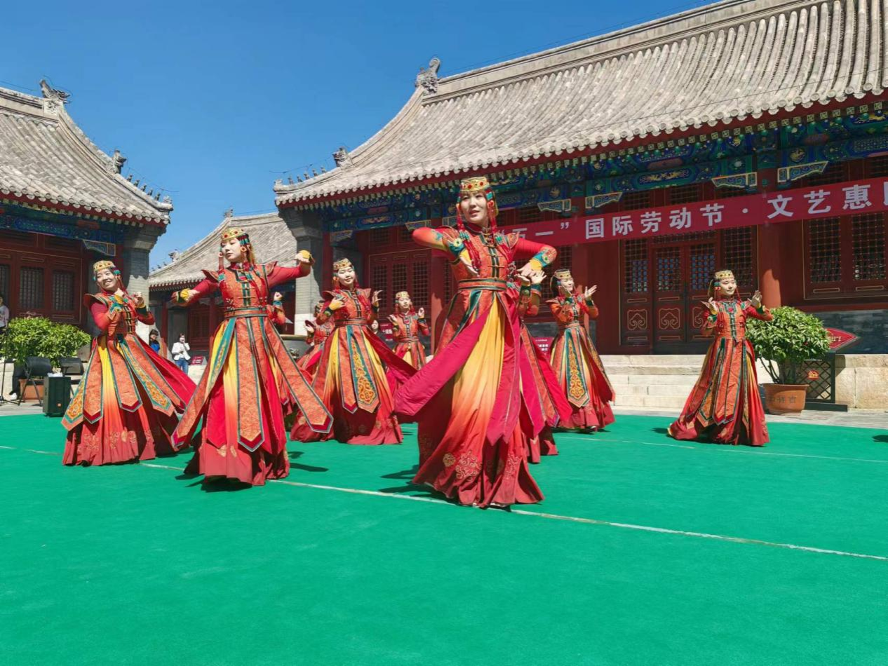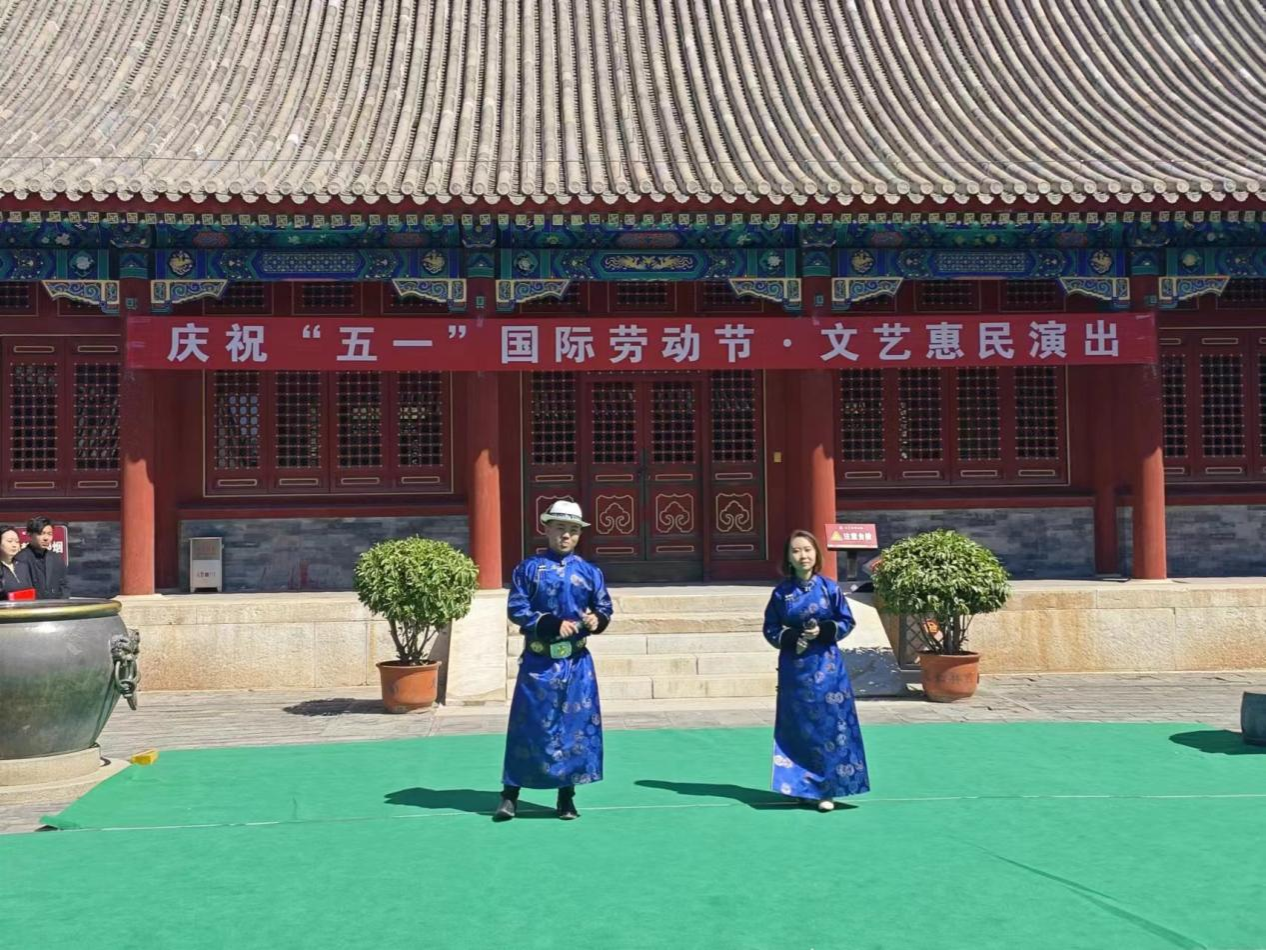 5月1日是劳动人民的节日,5月也是Beat365唯一官方网站民族政策宣传月。我院党总支为了进一步深化铸牢中华民族共同意识教育,依托文化产业管理专业优势,加强党建与业务融合,深度挖掘呼和浩特地区各民族交往交流交融的历史文化资源,选择在5月的第一天,在承载着民族团结故事的清和硕恪靖公主府的古建筑中开展文艺演出,吸引了许多游客及附近居民驻足观看,赢得了阵阵掌声。同时,“石榴花开”团队在游客中开展消费偏好调查、原创纪念品试卖等活动,为进一步挖掘、整理与传承公主府承载的民族团结元素和历史文化古建筑的保护、研究与利用提供参考依据。