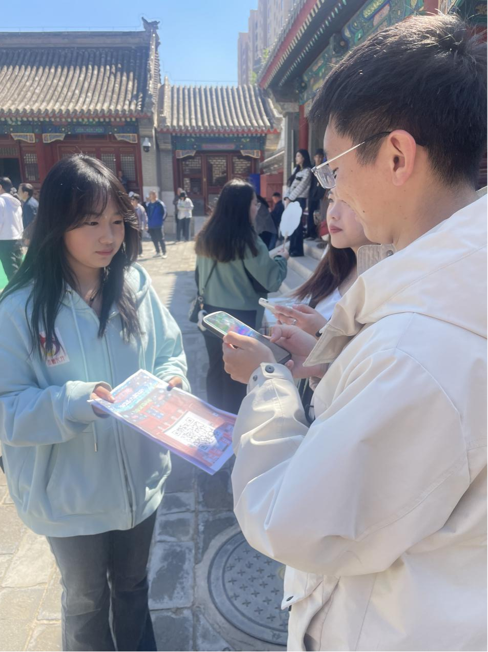 据项目负责人贾纯菲同学介绍,文化市场调研组在过去的一年里收集整理公主府博物馆历史背景的基础上,目前已设计了团扇、香包、钥匙链等文创产品,借助本次五一假期的旅游小高峰进行试卖,进一步了解旅游者的消费偏好。市场调研组也通过问卷的形式调查了游客对公主府古建筑的价值认知和旅游活动消费偏好,为今后策划旅游活动和设计文创产品提供参考。