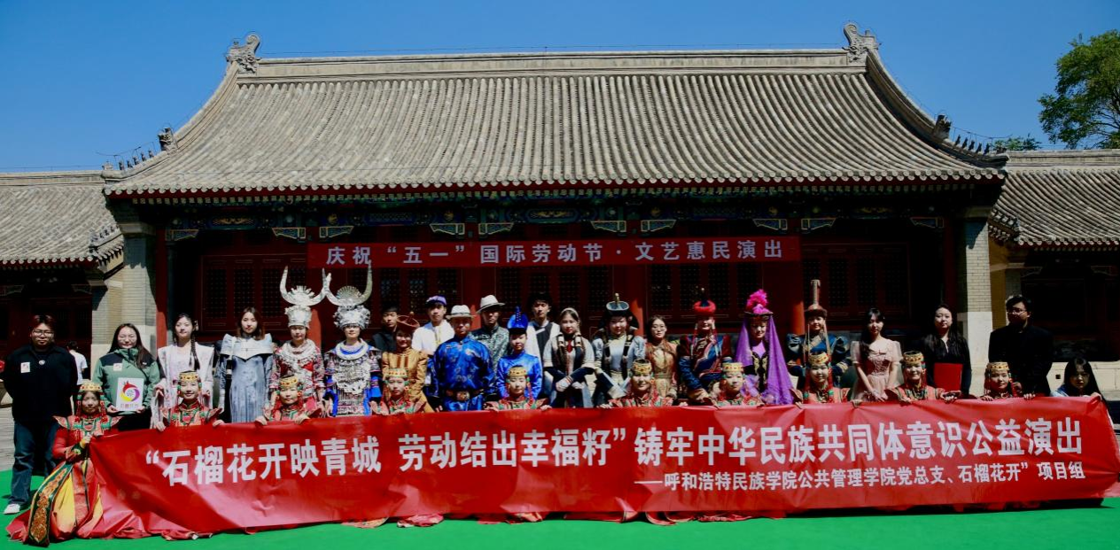 为迎接“5.1”国际劳动节,公共管理学院党总支联合呼和浩特清和硕恪靖公主府博物馆举办了“石榴花开映青城劳动结出幸福籽”公益演出。5月1日,在具有三百多年历史的清和硕恪靖公主府的古建筑中上演了一场别开生面的大学生惠民演出。演出者来自我院的大学生创新创业训练项目“石榴花开”团队,该团队由文艺演出策划组、文创产品策划组、文化市场调研组构成。在老师们的指导下,演出团的学生们精心编排了相声、舞蹈、马头琴演奏、民族服饰展示等节目,以此讴歌劳动人民,展现各民族团结一心、守望相助的美好画面。