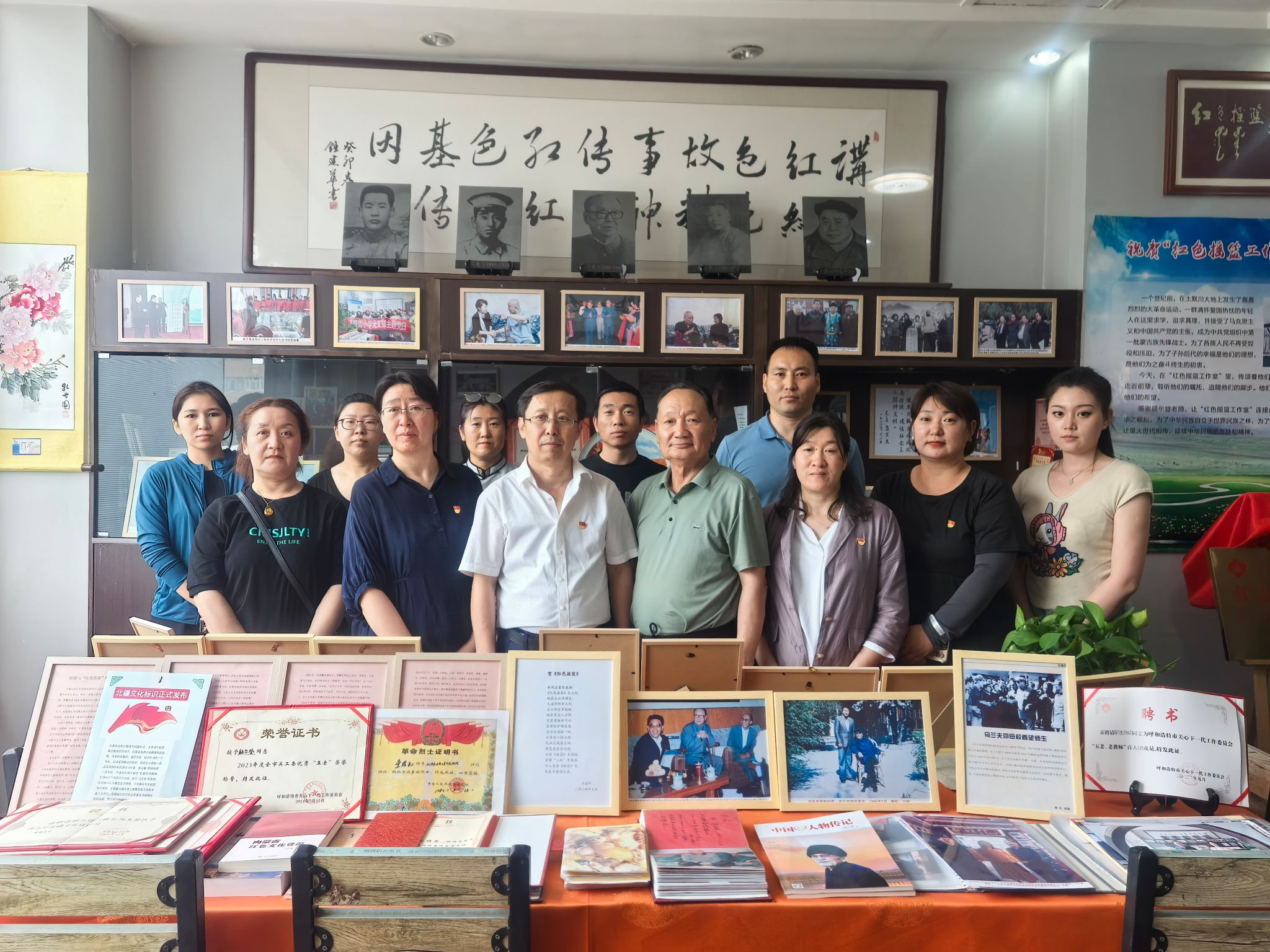 活动中“红色摇篮”工作室负责人额尔登巴雅尔老师从自己的学习和工作经历讲起,为老师们介绍土默特学校的悠久历史,讲解工作室的红色收藏展陈与红色文化长廊,并解读中华民族共同体意识的内涵。