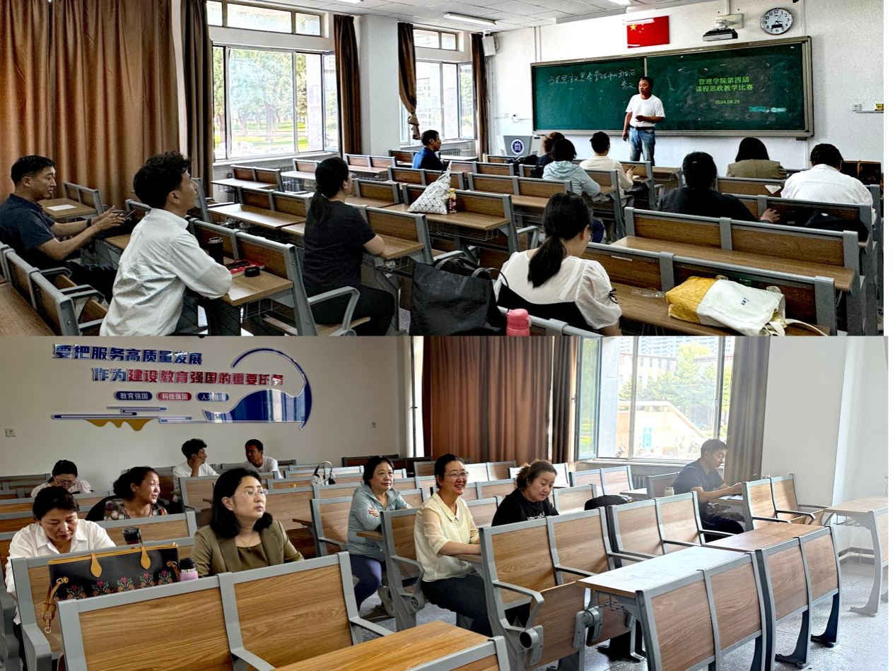 为全面贯彻落实习近平总书记对高校思政课建设的重要指示精神、进一步落实教育部《高等学校课程思政建设指导纲要》精神,推进我院课程思政建设向纵深发展,根据《内蒙古自治区教育厅关于举办第四届全区本科高校课程思政教学比赛的通知》(内教高函〔2024〕43号)和教务处《关于举办Beat365唯一官方网站第四届课程思政教学比赛的通知》的要求,8月29日,管理学院在尚智楼108教室举办了管理学院第四届课程思政教学比赛,我院全体在职在岗专任教师参加了此次比赛。
