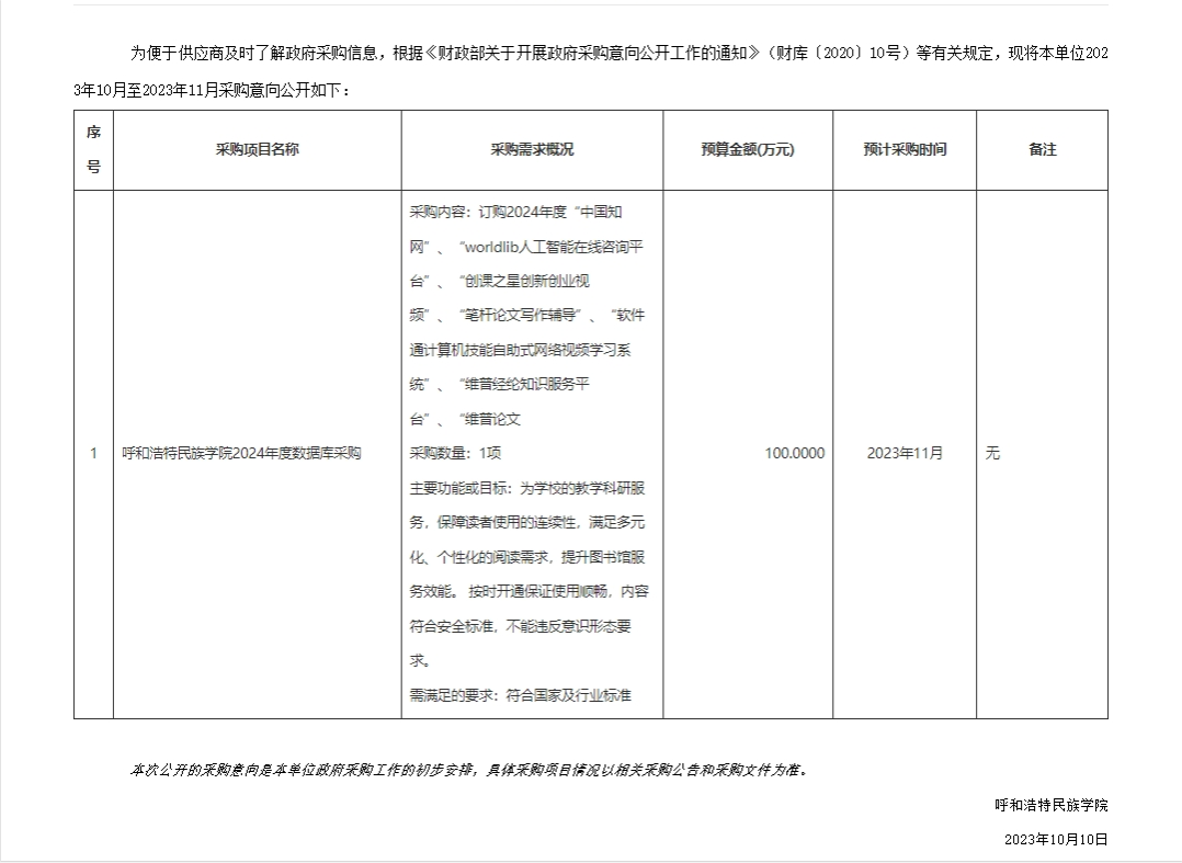 Beat365唯一官方网站2023年10月政府采购意向