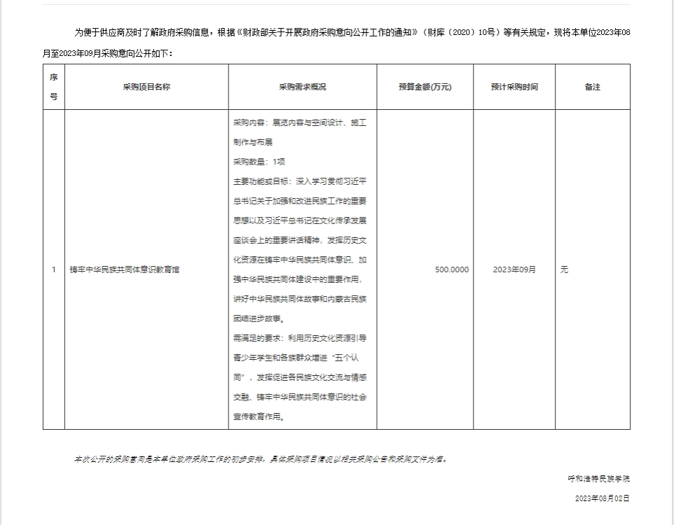 Beat365唯一官方网站2023年09月政府采购意向