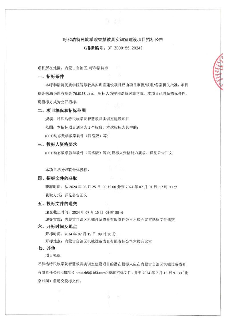 Beat365唯一官方网站智慧教具实训室建设项目招标公告