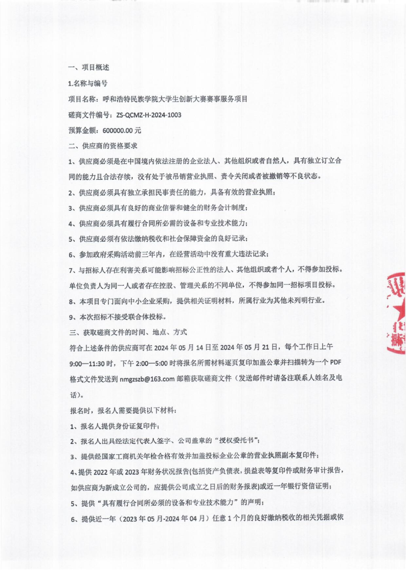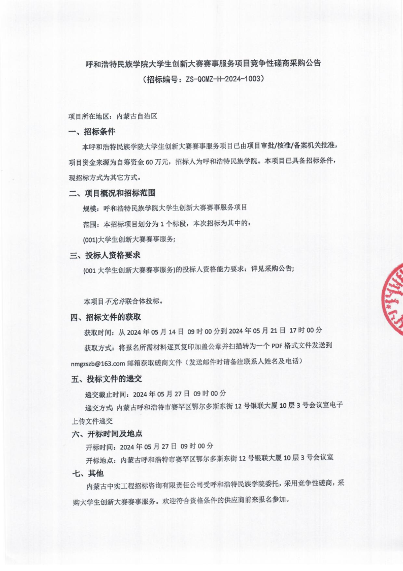 Beat365唯一官方网站大学生创新大赛赛事服务项目竞争性磋商采购公告