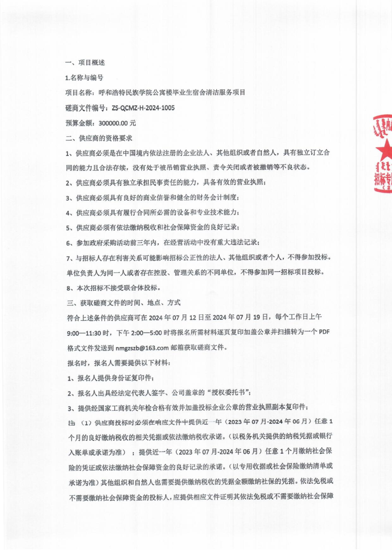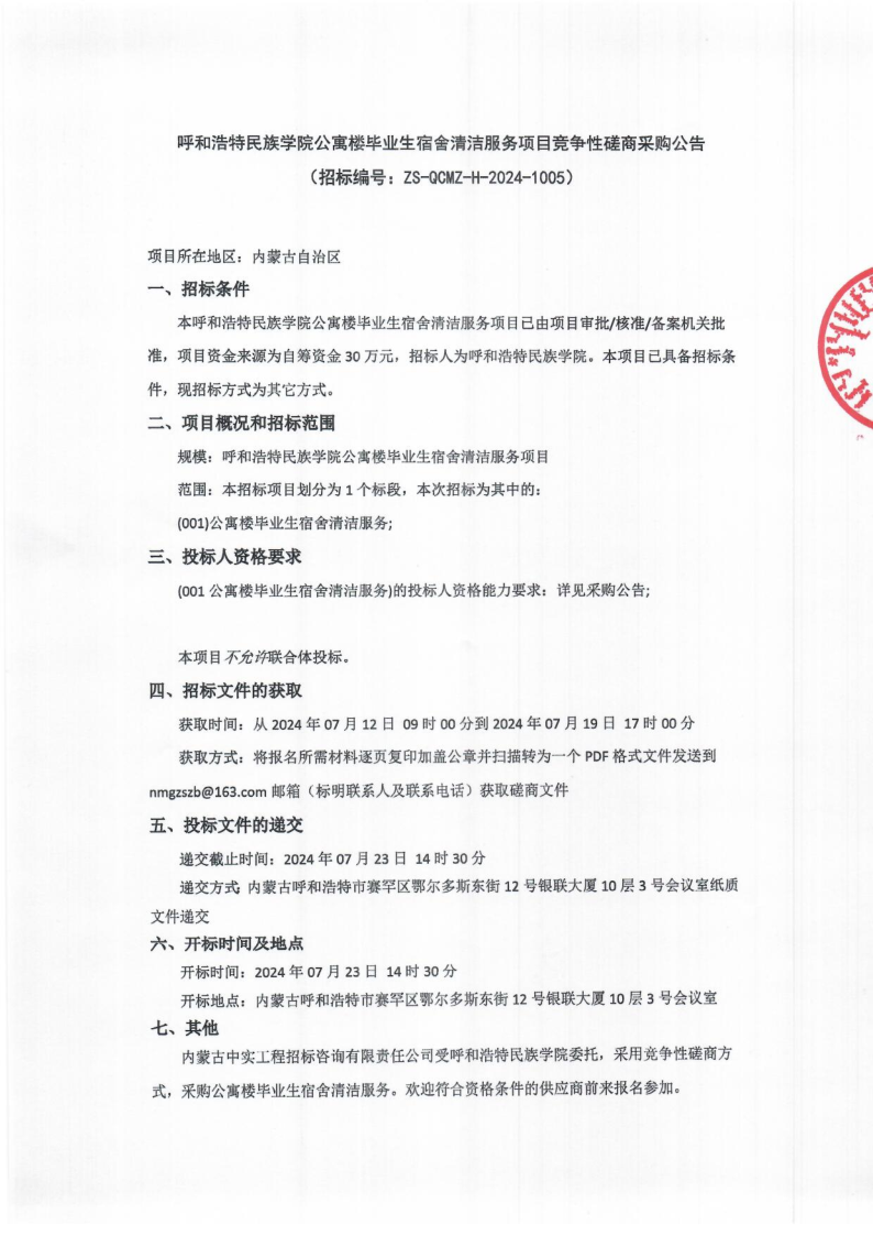 Beat365唯一官方网站公寓楼毕业生宿舍清洁服务项目竞争性磋商采购公告