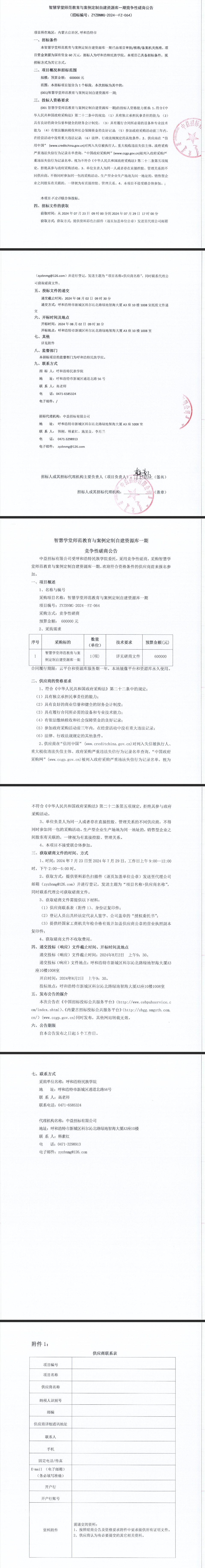 智慧学堂师范教育与案例定制自建资源库一期竞争性磋商公告
